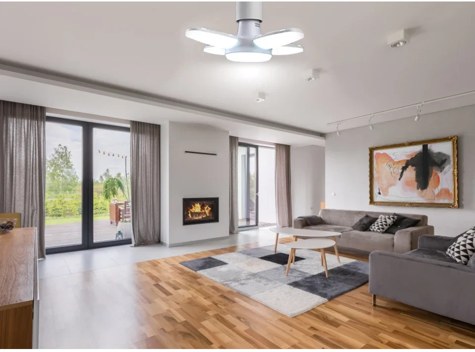 * Éclairage de ventilateur de plafond: Les projecteurs supérieurs projettent la lumière sur le plafond pour créer une ambiance.
