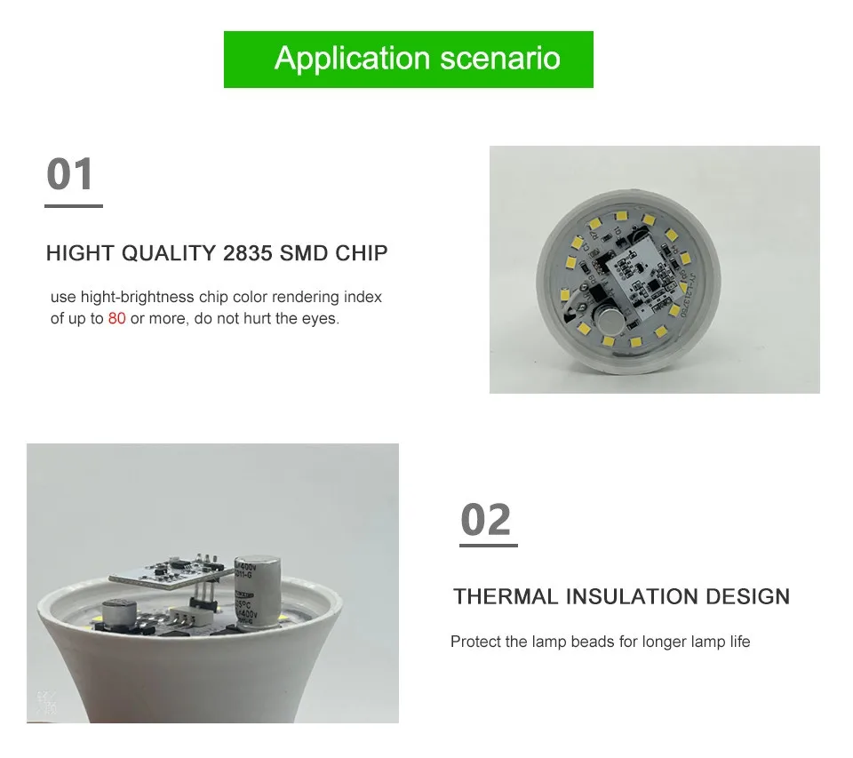 2. [ÉCONOMIE D’ÉNERGIE] — L’ampoule LED intelligente s’allume uniquement dans l’obscurité et au crépuscule lors de la détection de mouvement et arrête le travail pendant la journée. L’ampoule LED est plus économe en énergie que les ampoules à détecteur de mouvement traditionnelles, ce qui contribue grandement à réduire votre charge énergétique. Cette conception augmente la durée de vie du service.