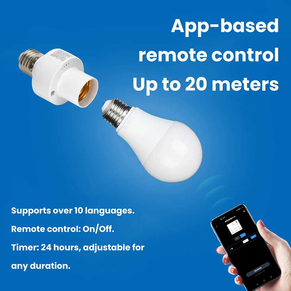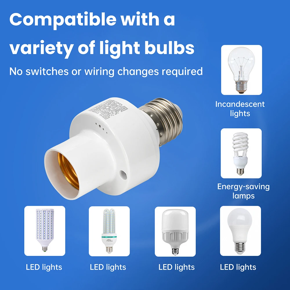 AC 110-240V 50-60HZ WiFi Bluetooth ampoule LED APP télécommande sans fil minuterie intelligente interrupteur d’éclairage E27 adaptateur d’ampoule support de lampe