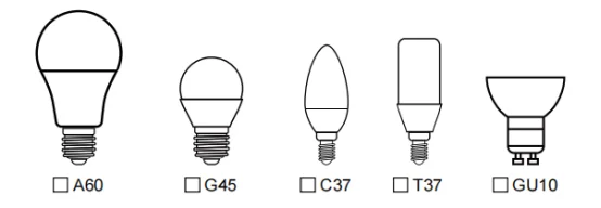 Type: Ampoule LED intelligente Bluetooth GU10 C37 A60 T37 WIFI