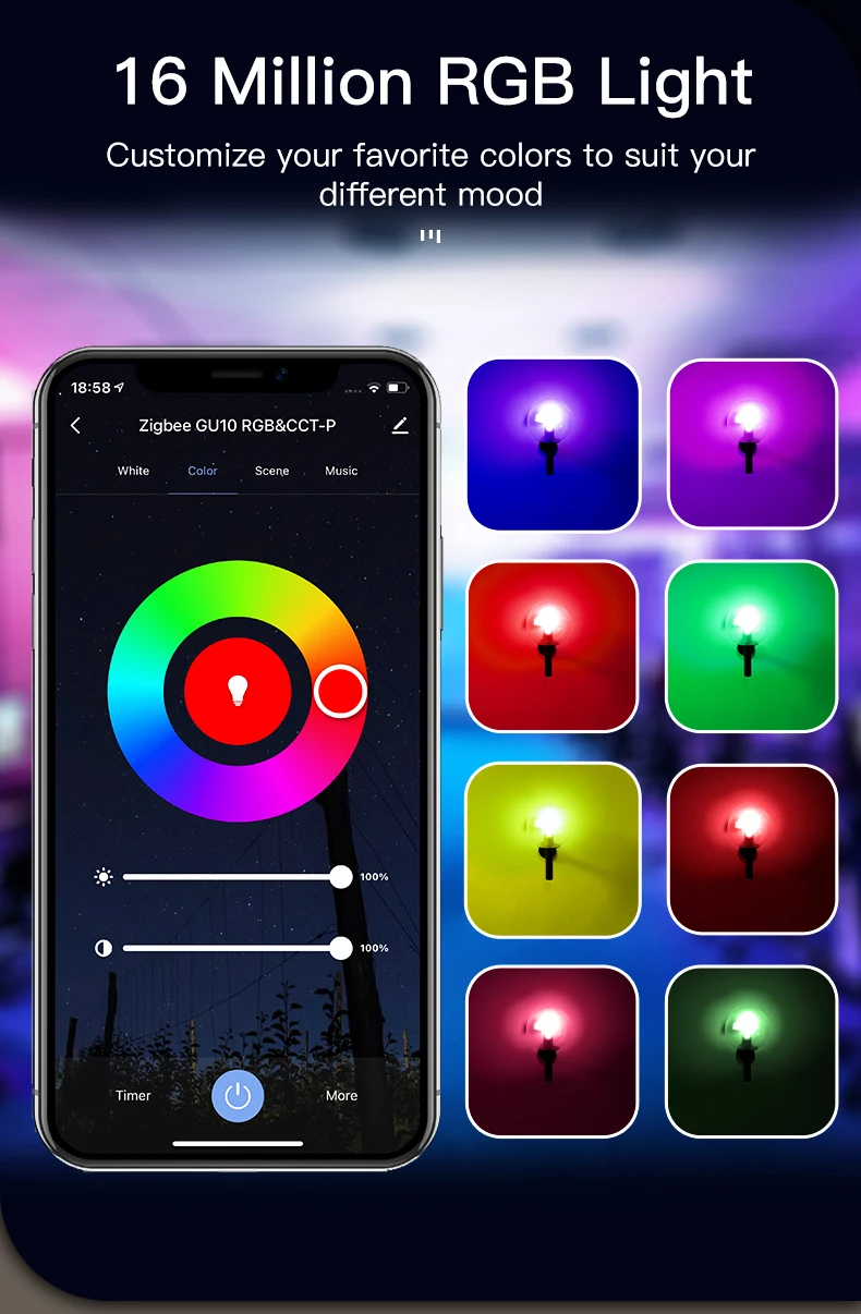 Remarque : Si vous choisissez la version Zigbee.Zigbee gu10 n’inclut pas la passerelle Zigbee et les besoins d’acheter séparément.