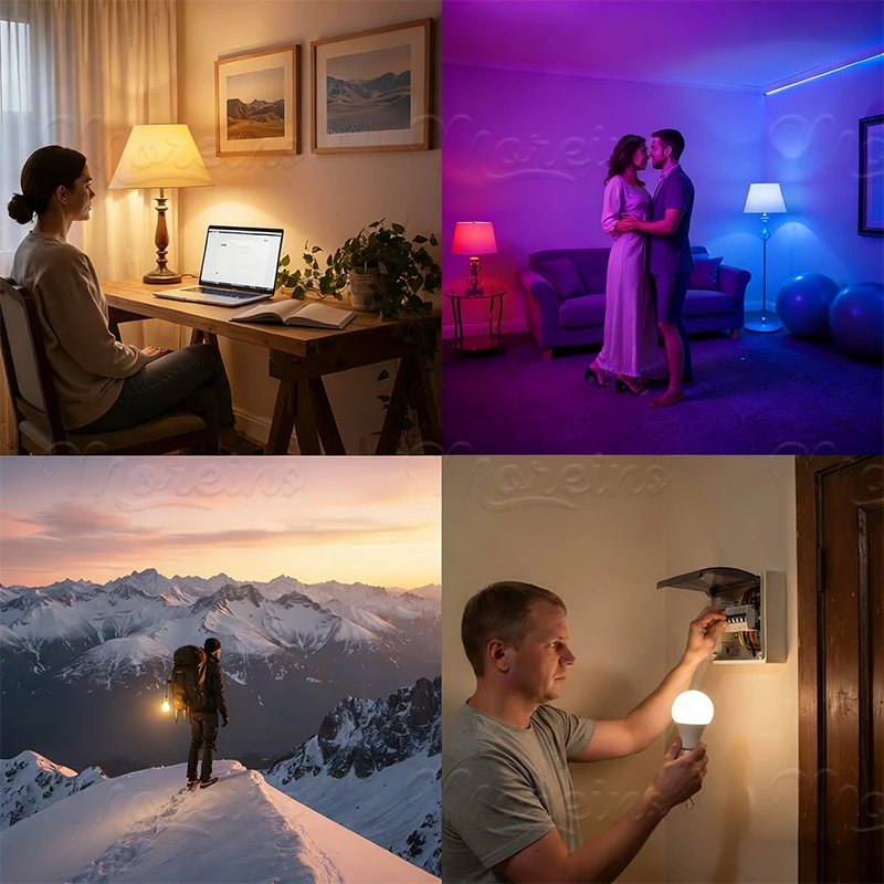 2) Base E27 ou B22 sans alimentation, pas d’alimentation directe. Si l’ampoule ne fonctionne pas, veuillez utiliser USB 5 V pour charger l’ampoule.