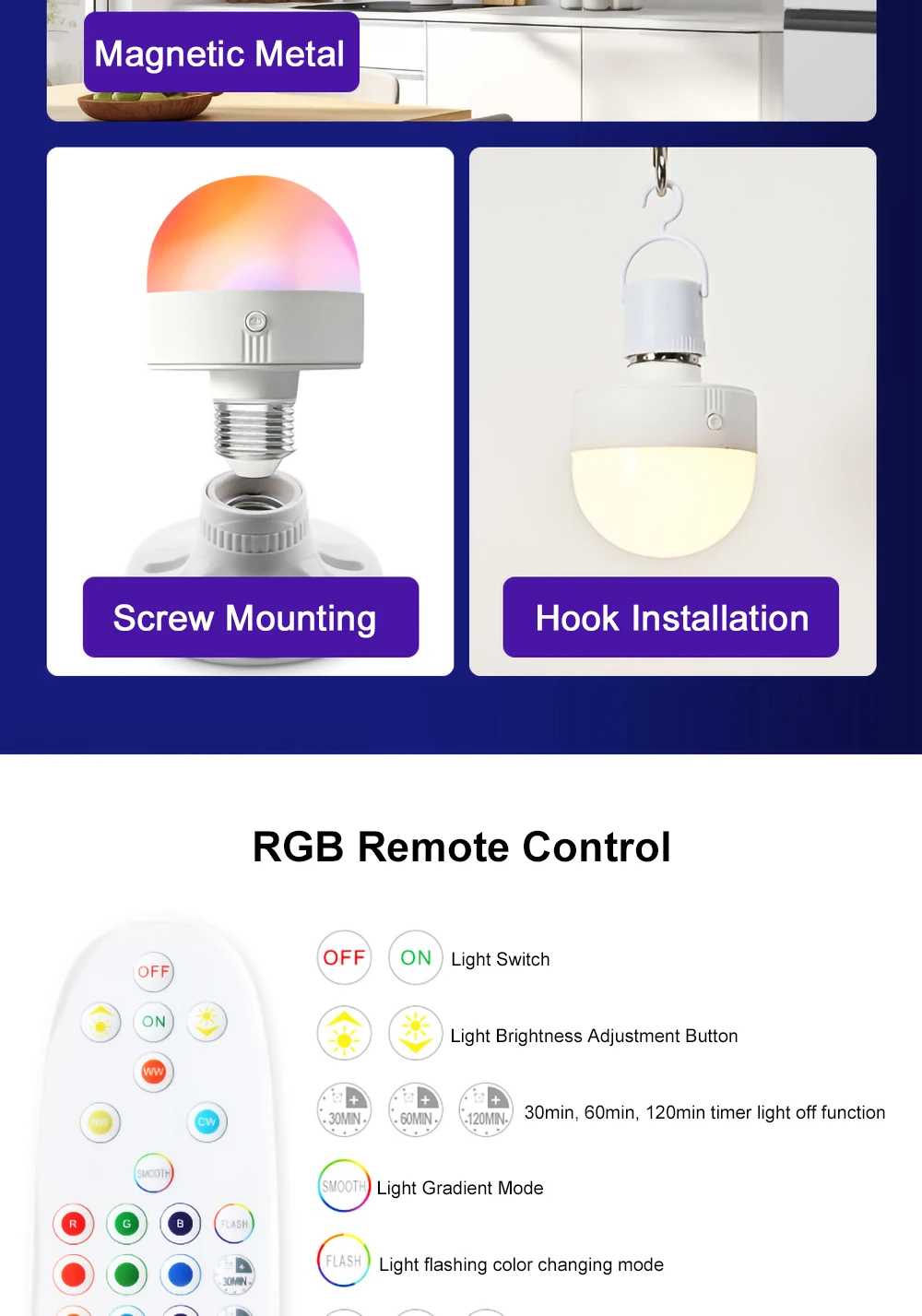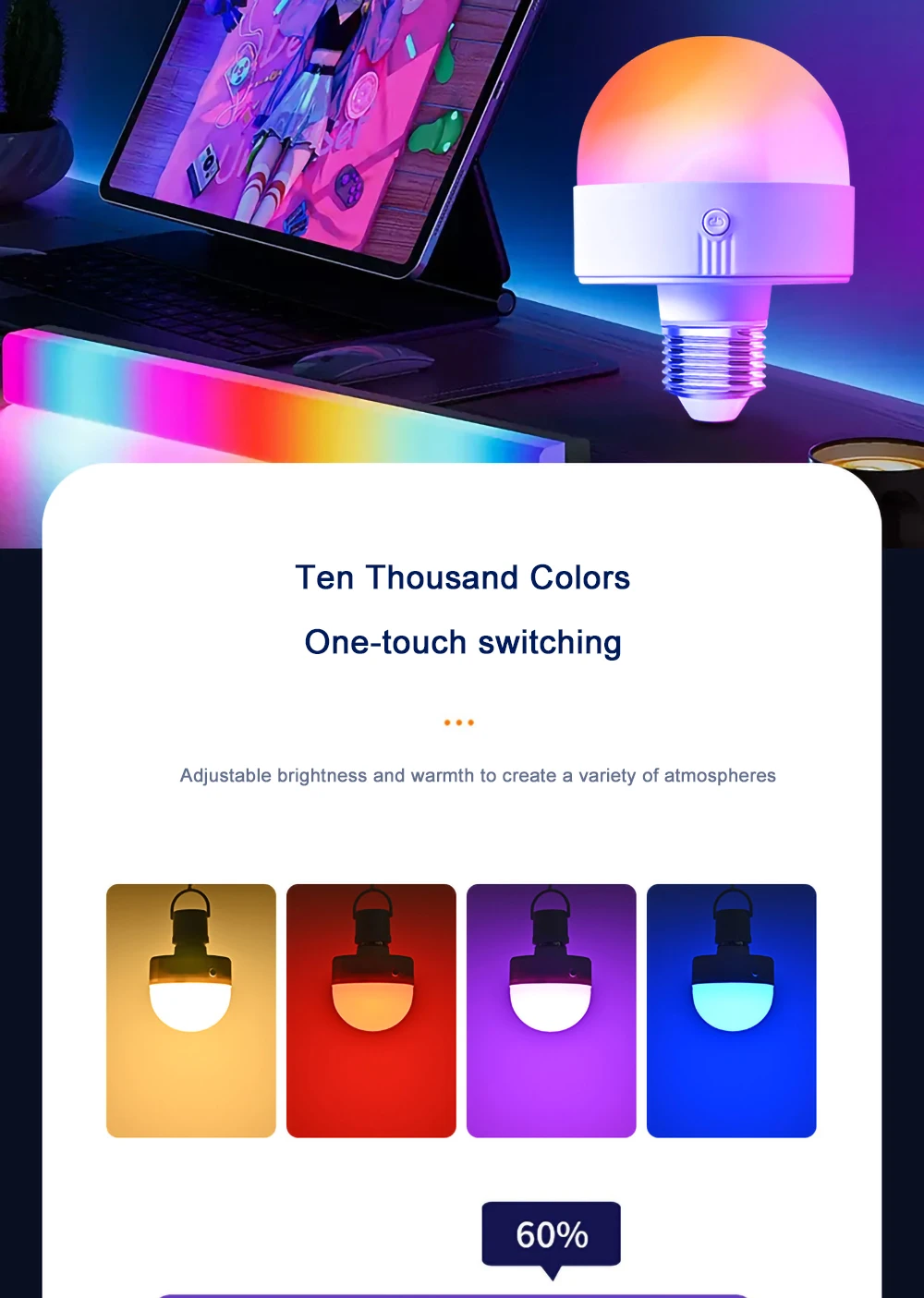 Ampoule LED rechargeable ampoule d’ambiance multifonctionnelle.