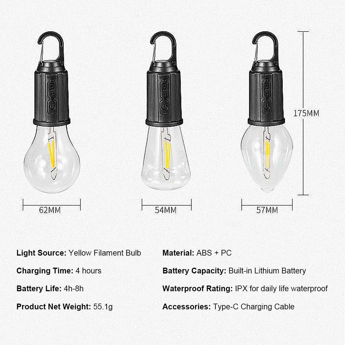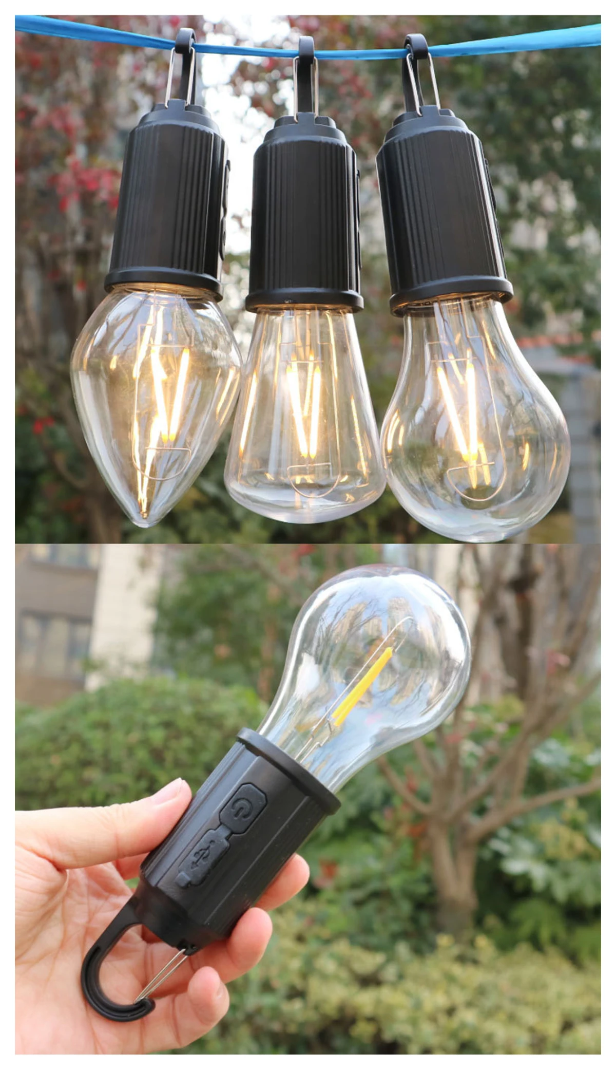 Haute luminosité USB Rechargeable lampe à LED ampoules lumière d’urgence crochet Camping pêche Portable lanterne veilleuses chaudes