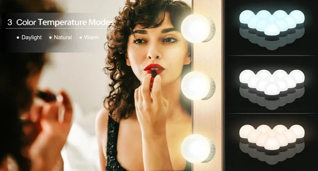 2,3 températures de couleur réglables, lumière blanche, lumière neutre et lumière chaude, ce qui rend votre maquillage plus beau.
