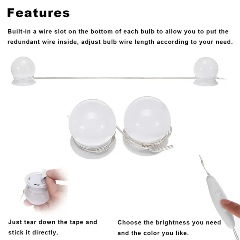 Nom du produit : ampoules LED pour miroir de courtoisie.