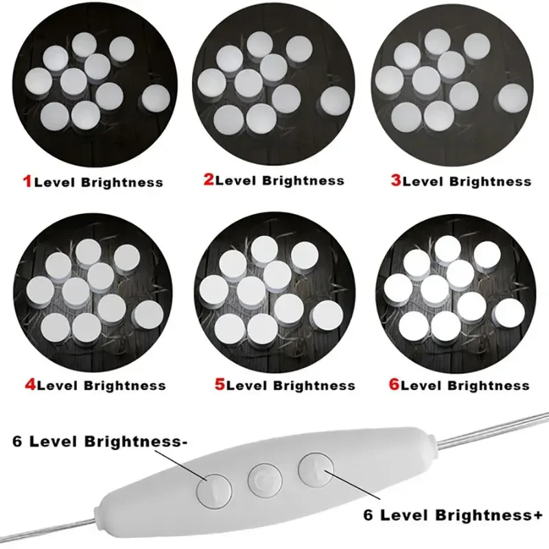 3.6 niveaux de luminosité réglables, fournissant un éclairage professionnel correct de couleur pour le maquillage.