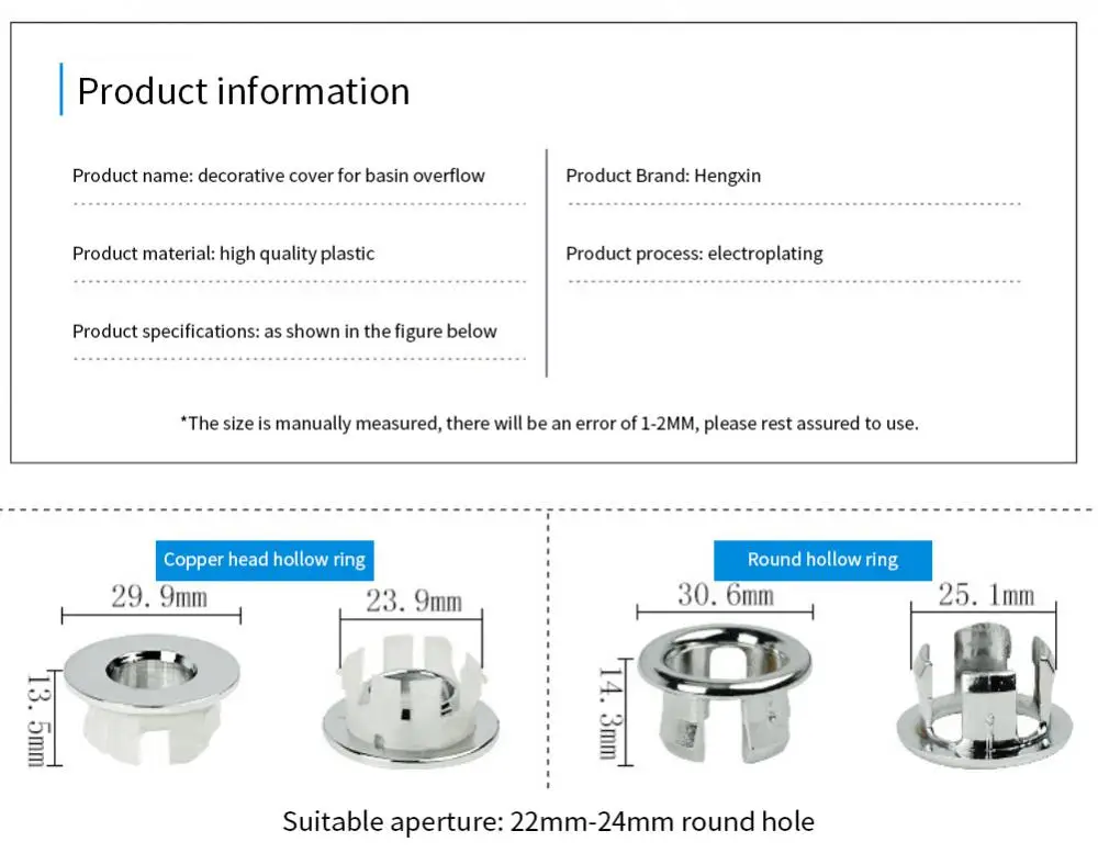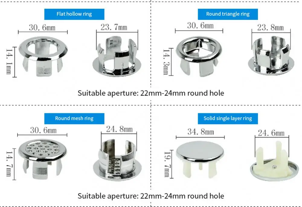 Anneau rond d’évier de bain, couvercle de trop-plein, bouchon de lavabo de rechange, garniture de rangement en plastique, salle de bains, bassin en céramique, Pots en céramique, anneau de trop-plein
