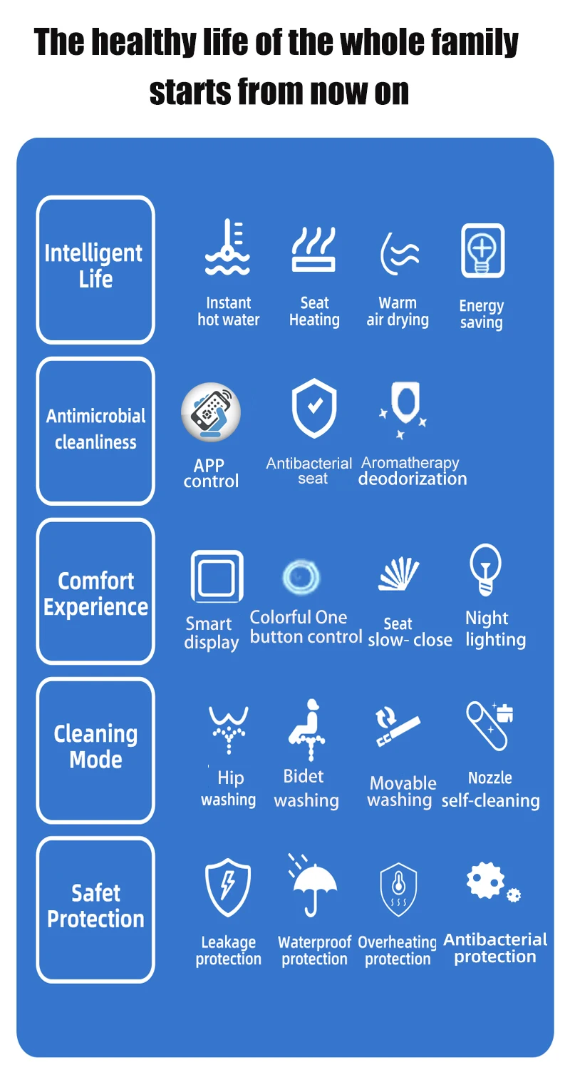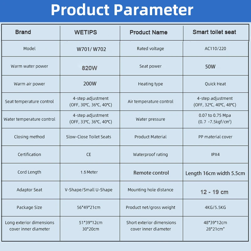 - Toilet Seat Cover Material: Antibacterial heated seat