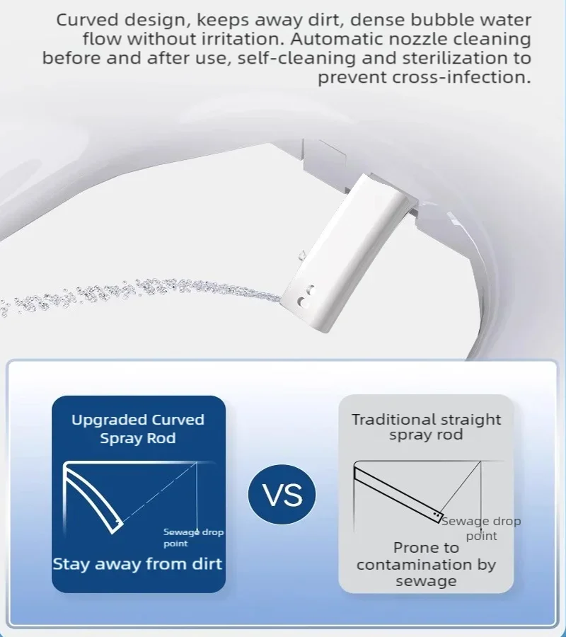 Modes de lavage multifonctionnels : choisir des modes de lavage des fesses, de lavage féminin et d’auto-nettoyage.Ajustez la pression de l’eau, la température (4 niveaux), et la position des buses via l’application ou la télécommande.
