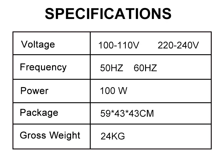 • Voltage: 100-240v (tension duelle)