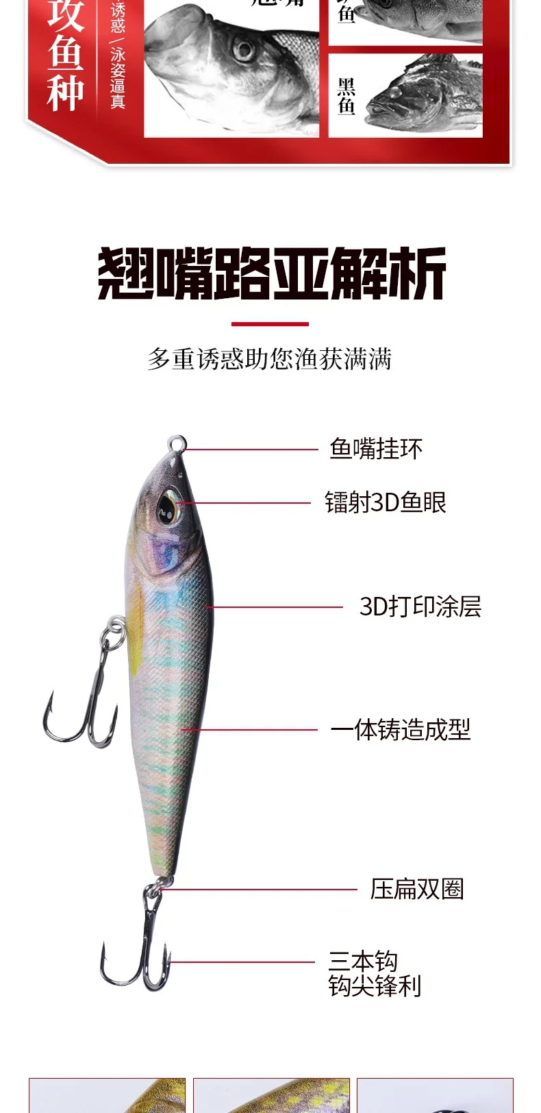 Appât crayon coulant imprimé 3d, 14g, 85mm, système de transfert Wobbler en plastique, Popper Pesca Swimbait Cast Minnow, matériel de pêche