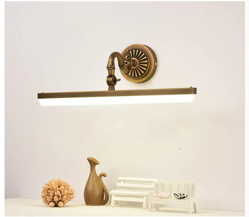 Livraison gratuite laiton moderne miroir applique 43cm/58cm salle de bain miroir lampe étanche rétro Bronze armoire vanité miroir lumières