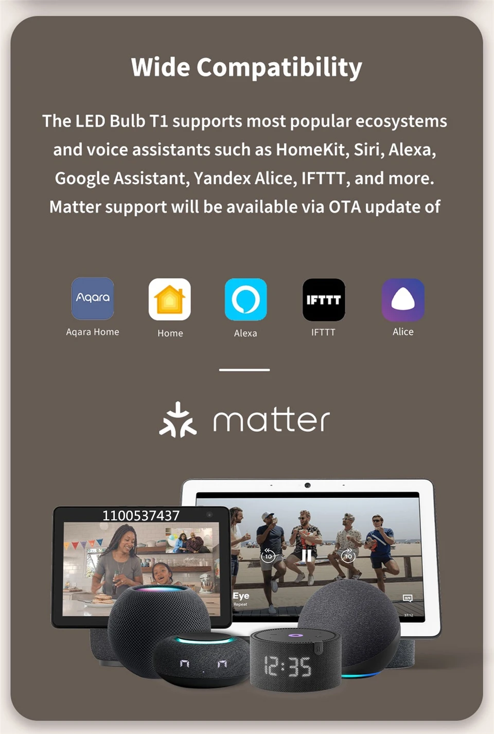 Outre Aqara Home, les ampoules intelligentes Aqara LED sont compatibles et peuvent être contrôlées avec Apple HomeKit, Google Home et Alexa.