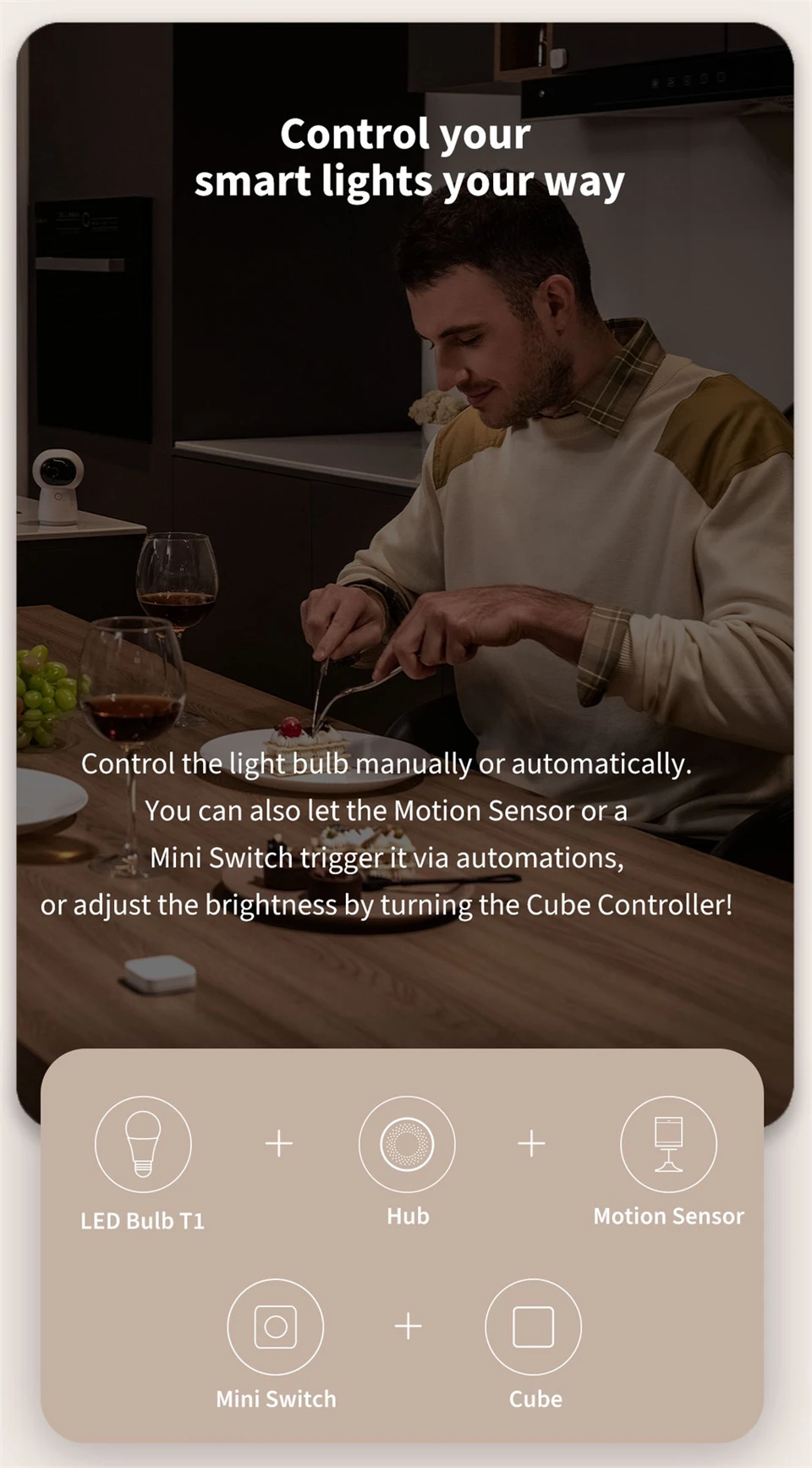 Dans le cadre de votre Aqara Smart Home, vos ampoules intelligentes peuvent également réagir aux capteurs de mouvement, aux capteurs de porte, au moment de la journée, aux géolocalations ou dans le cadre de scènes.À titre d’exemple, vos ampoules peuvent s’atténuer sur une scène Movie Time.