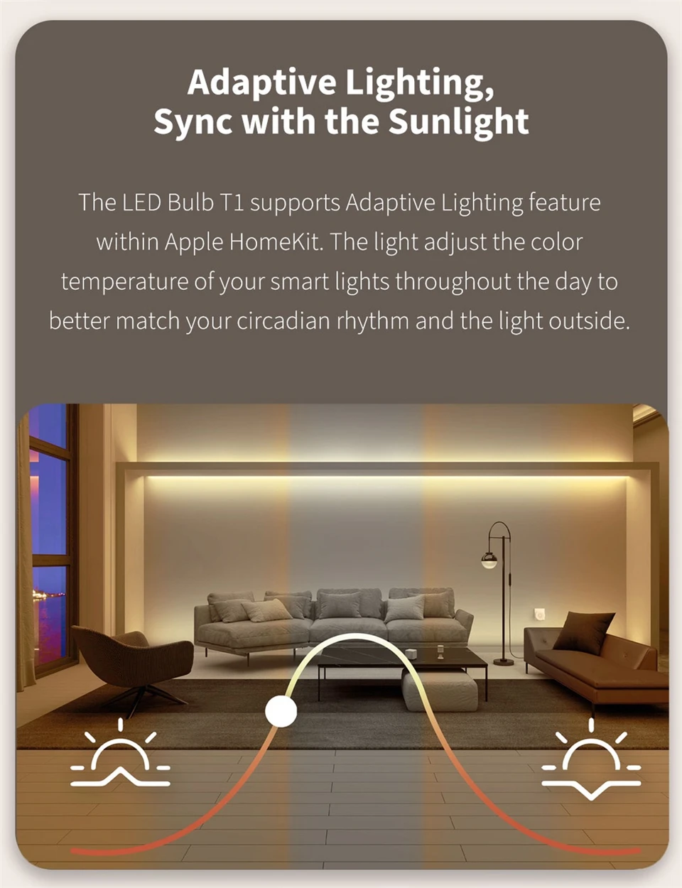 Comme ampoules d’éclairage intelligentes entièrement compatibles avec Apple HomeKit, les ampoules Aqara E27 ont une autre fonction – prend en charge la technologie d’éclairage adaptative de Apple.Une fois apnée dans l’application Apple Home, les ampoules d’éclairage adaptatives choisissent automatiquement une température de couleur appropriée pour le jour (refroidisseur au midi et au réchauffeur dans les soir).Beside qui, les lumières intelligentes tournera automatiquement le plus chaud lorsque vous dimez vos lumières.Tout ce qui arrive sans l’entrée utilisateur et fonctionne même lors de l’alimentation est éteint et éteint.