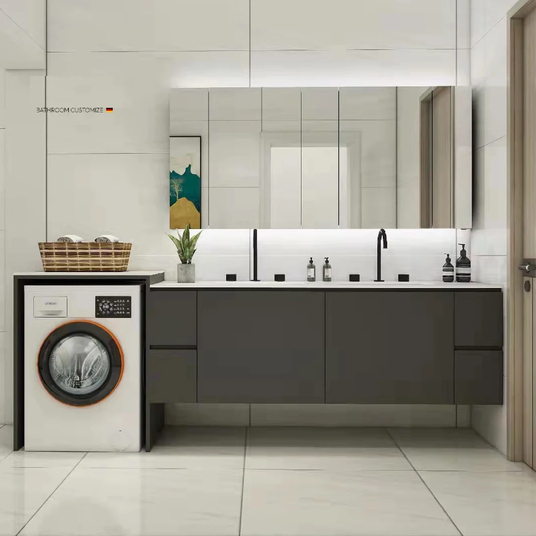 Lavabo de luxe moderne personnalisé en bois et céramique, armoire à linge de salle de bains pour laver les vêtements, 716