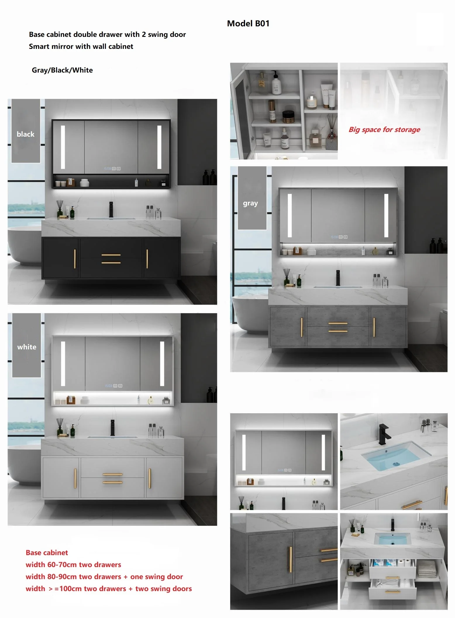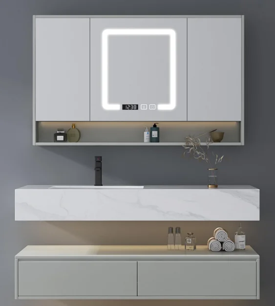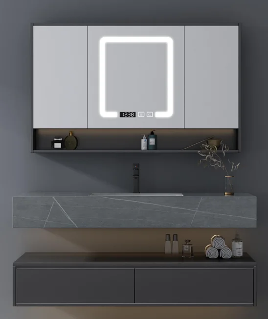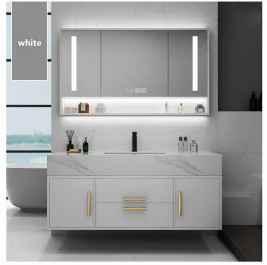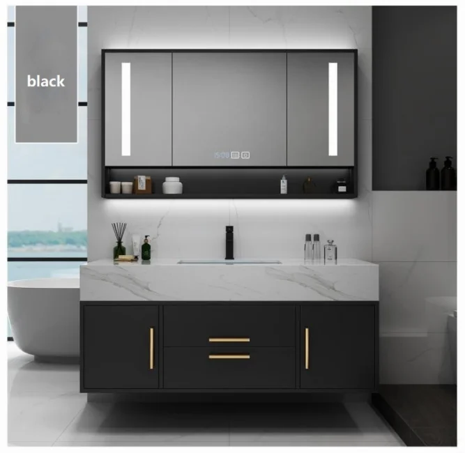 Armoire à miroir moderne pour salle de bain, armoires imperméables en bois, personnalisation de baignoires, ensembles de toilettes