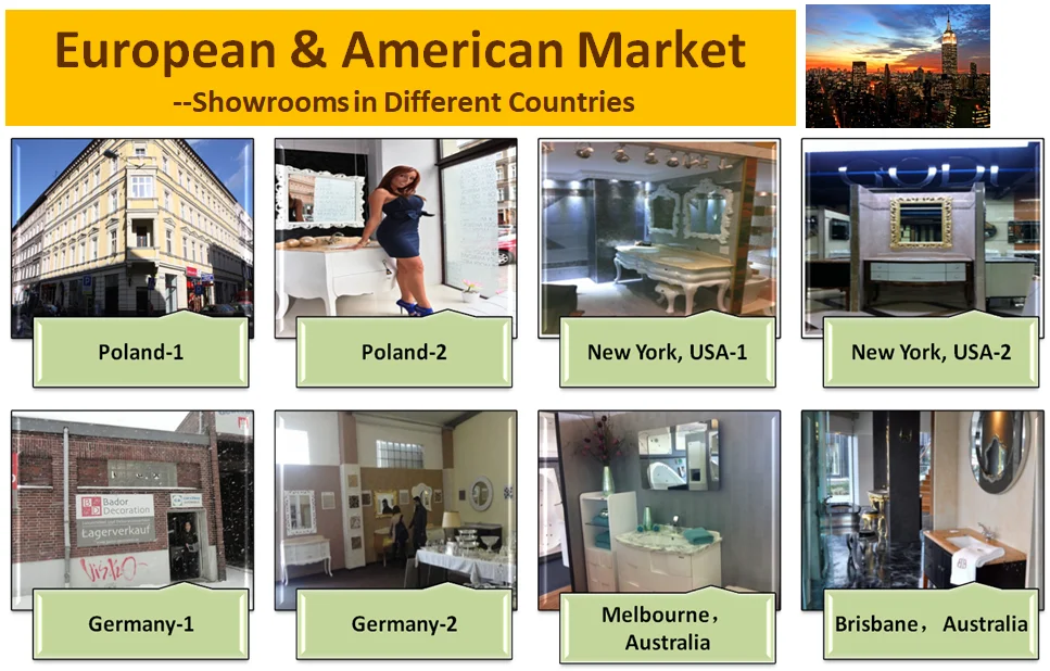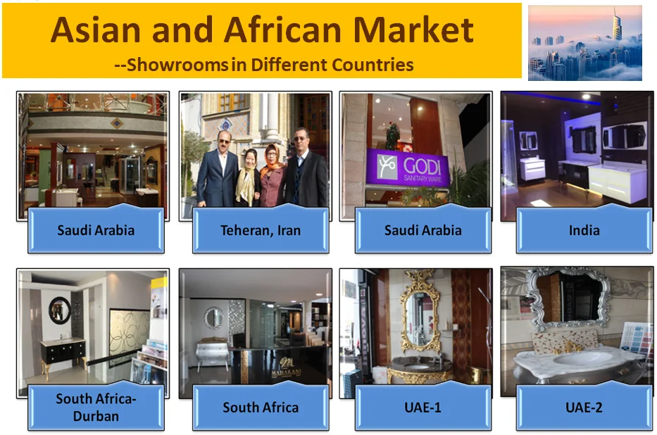 Nos franchiseurs et nous avons créé de loin plus de 400 magasins sur le marché chinois. Nous faisons également des affaires via l’application et le site Web en ligne. Le modèle d’affaires O2O est également un moyen pour notre modèle d’affaires domestique. Pour développer nos activités internationales, nous assistons à de nombreuses expositions mondiales, telles que Shanghai KBI, la foire de Canton, Mosbuild-Moscou, IDS Canada-Toronto, USA-KBIS,Frankfurt ISH, la foire de Suède, KBB-Londres, Arabie Saoudite-SBIE,Dubai Fair,etc. Également nous faisons des affaires en ligne par l’intermédiaire de la connexion de site Web. Ceux-ci augmentent largement nos affaires de différentes manières pour la coopération avec les clients d’outre-mer. Nous faisons des affaires avec les clients d’outre-mer par l’intermédiaire du modèle d’affaires traditionnel, des distributeurs, des agents, des projets, etc. Et nous avons quelques partenaires mondiaux stables dans le monde entier.