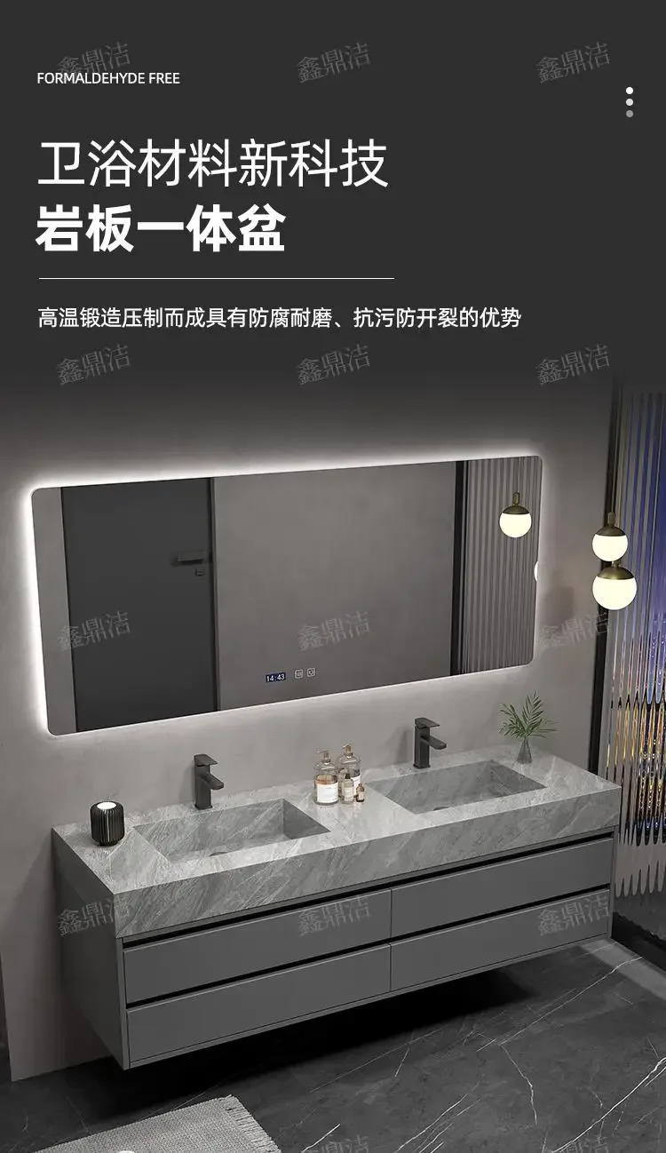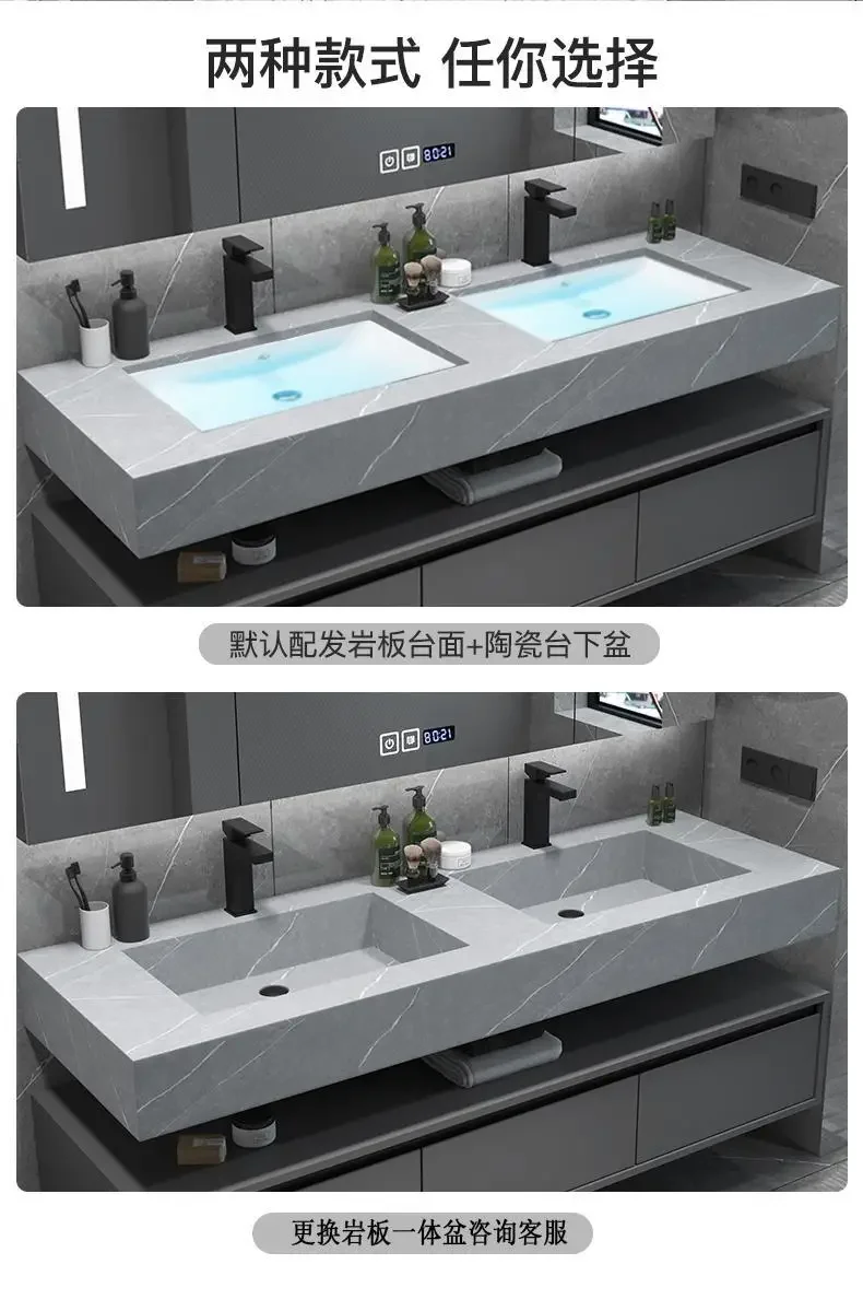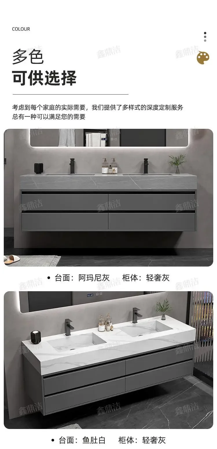 Soyez le premier à laisser votre avis sur “Armoire de salle de bain grise, dalle de roche, évier en céramique intégré, combinaison de miroirs, tiroir de lavage, meuble de rangement à Double lavabo”