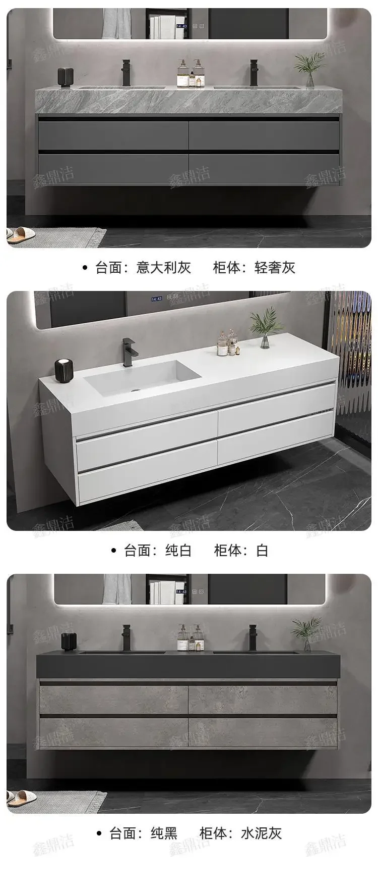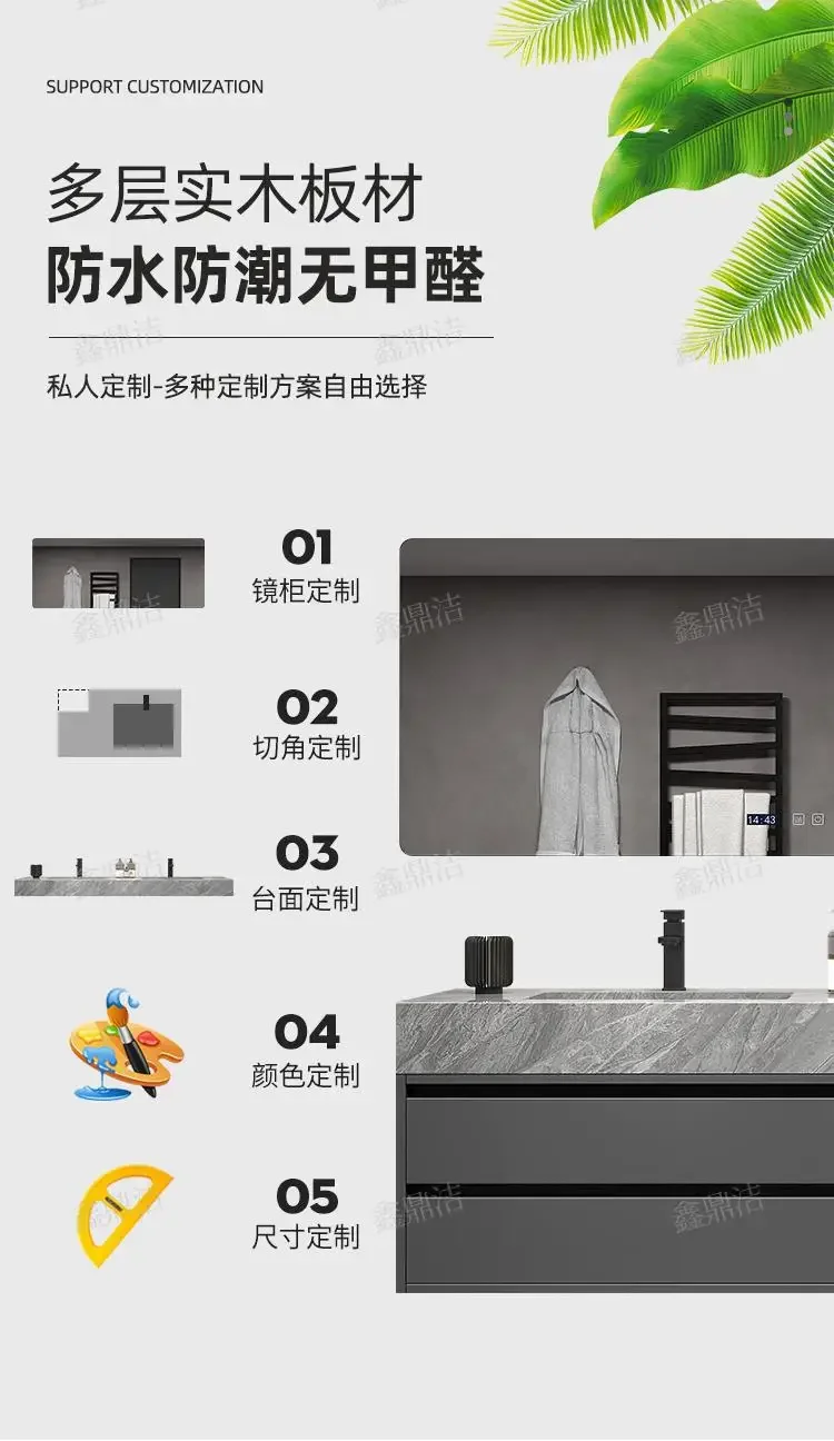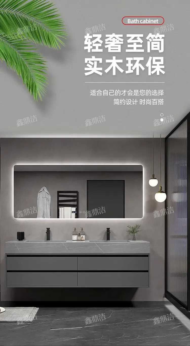 Soyez le premier à laisser votre avis sur “Armoire de salle de bain grise, dalle de roche, évier en céramique intégré, combinaison de miroirs, tiroir de lavage, meuble de rangement à Double lavabo”
