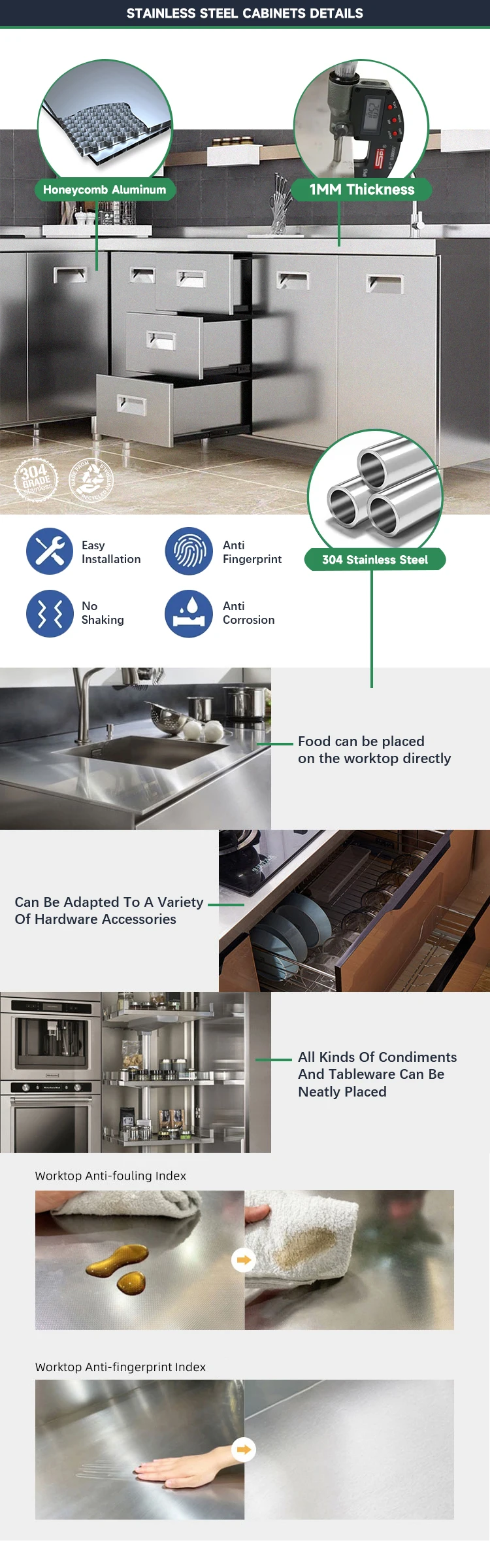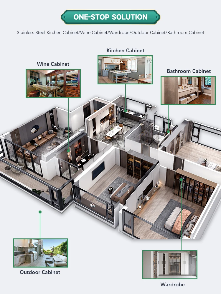 Soyez le premier à laisser votre avis sur “armoires cuisine îlot évier intégré acier inoxydable 304 alimentaire modulaire personnalisable brillante marbre blanc veines noires accents olive”