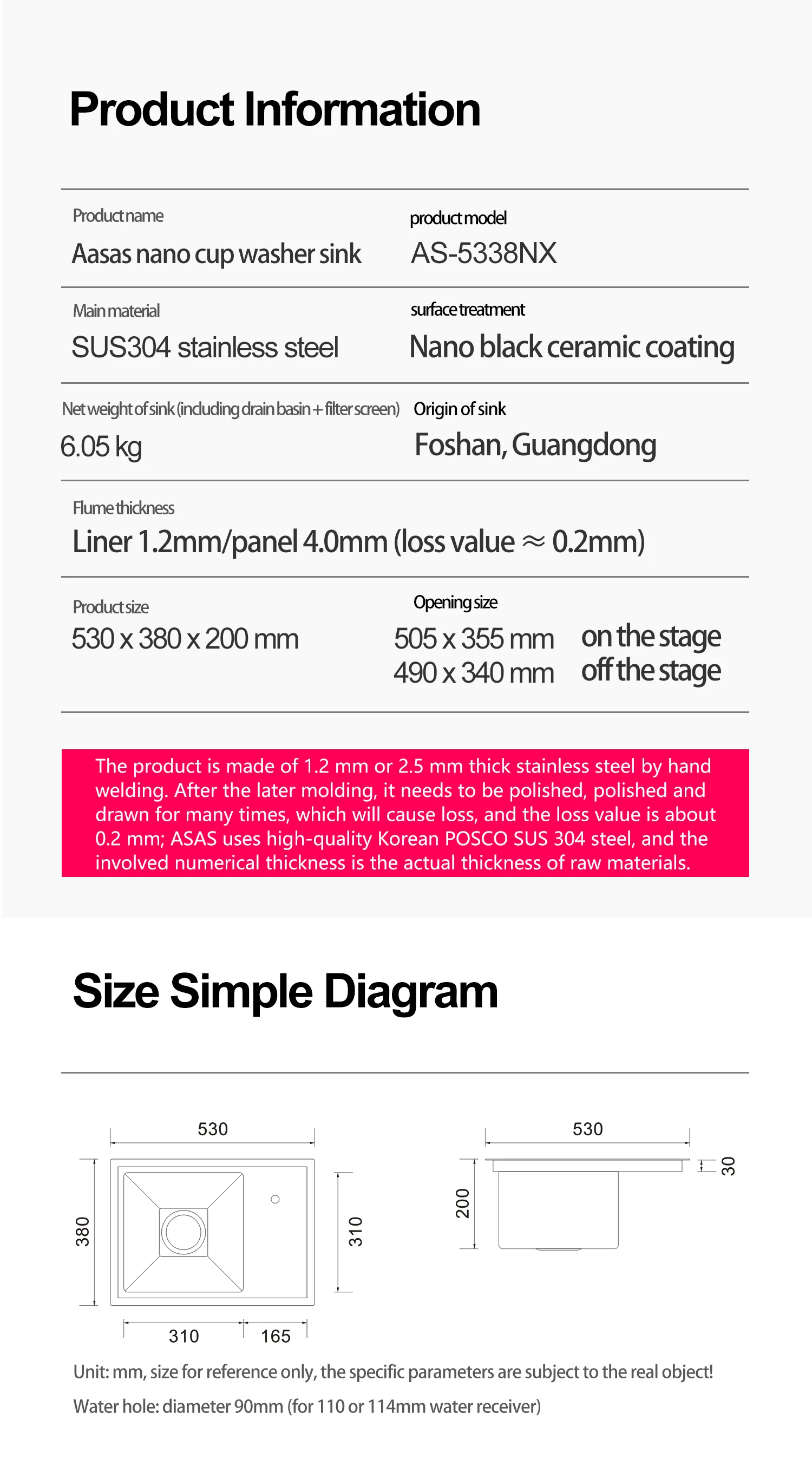 - Matériau: Acier inoxydable