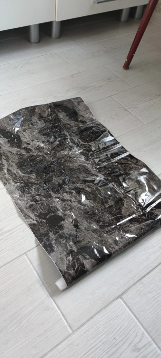"J'ai été très satisfait de cet autocollant décoratif en PVC. Il est de très bonne qualité et très facile à appliquer sur mes meubles modernes. Sa résistance à l'eau en fait un choix parfait pour la cuisine et la salle de bain. Le seul petit bémol est que le rouleau est un peu difficile à découper, mais cela ne gâche en rien la beauté du rendu final. Je recommande vivement ce produit pour rénover ses meubles facilement et de manière durable."
