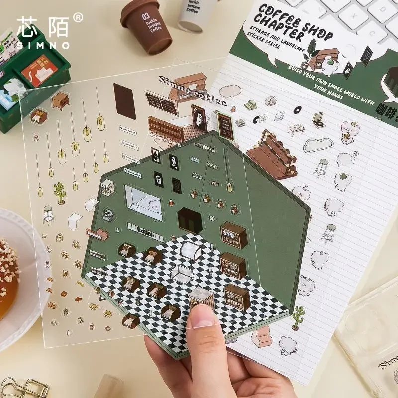 autocollants diorama hexagonaux papeterie loisirs créatifs agenda scènes miniatures intérieures café librairie supermarché bistrot mignons découpés pastelsautocollants diorama hexagonaux papeterie loisirs créatifs agenda scènes miniatures intérieures café librairie supermarché bistrot mignons découpés pastels
