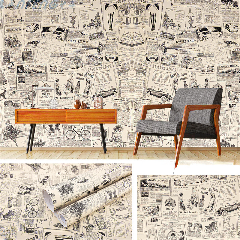 Autocollants muraux auto-adhésifs en PVC 45×100, papier peint rétro pour journal, chambre à coucher, salon, décoration murale, décor de cuisine