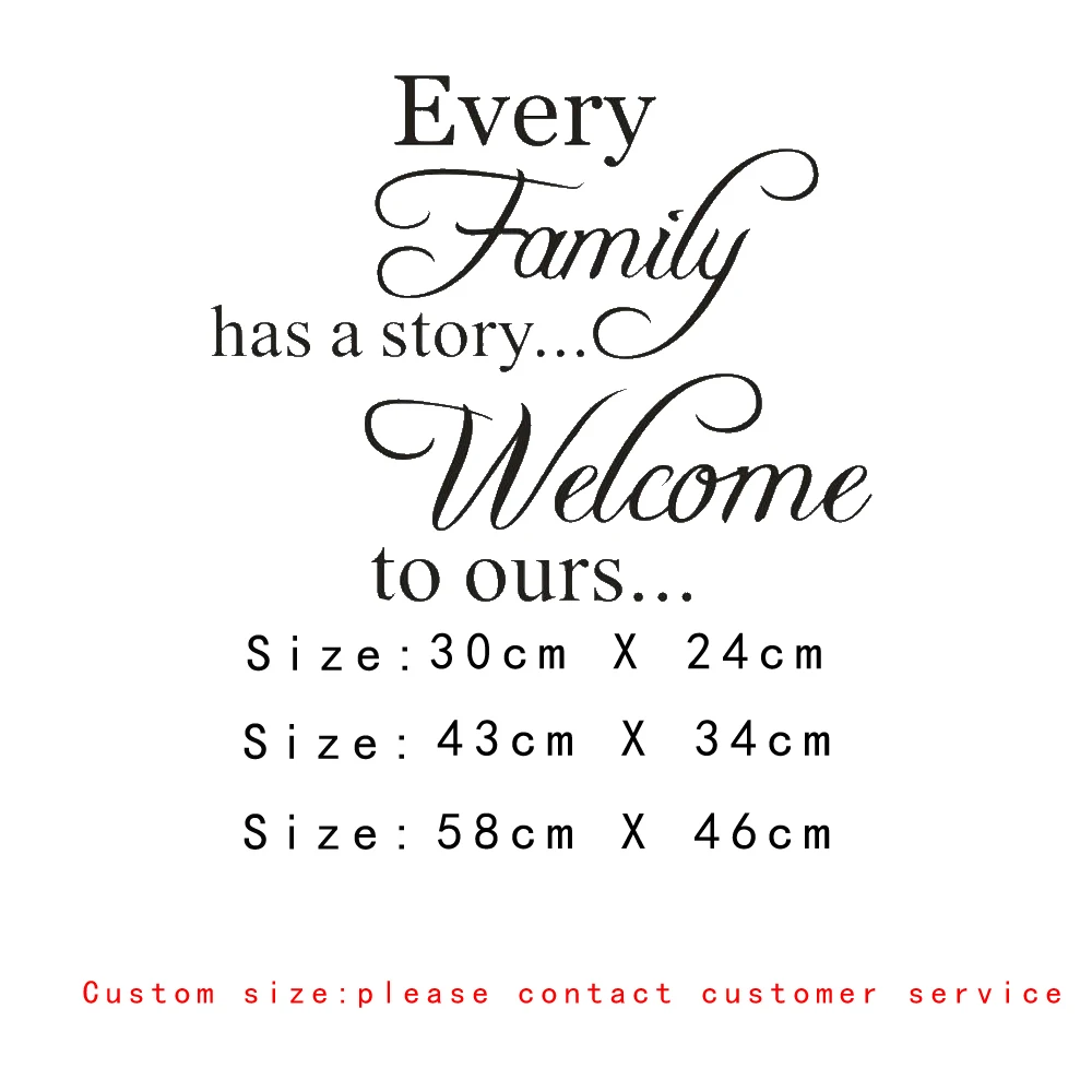 Autocollants muraux de bours de bienvenue en PVC, chaque famille a une histoire, autocollants muraux décoratifs amovibles mon cœur, décoration de maison en vinyle