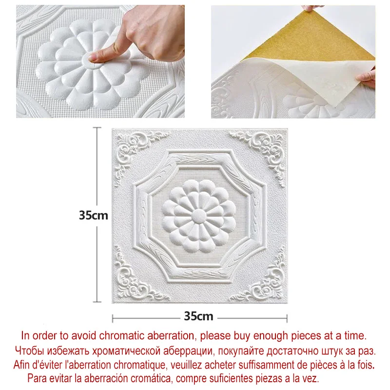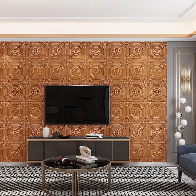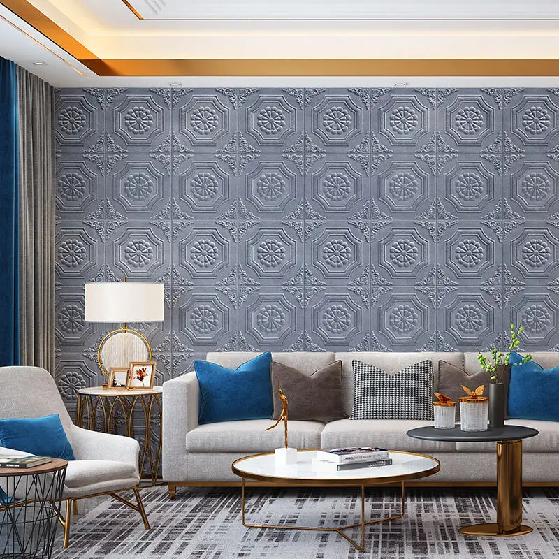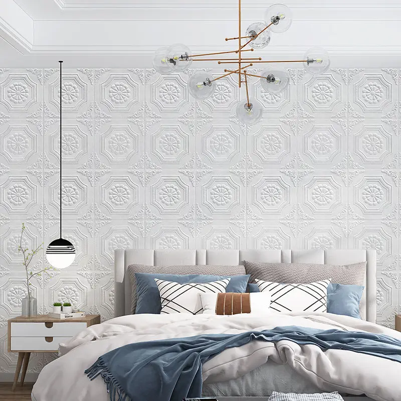 Papier peint 3D Stickers muraux Panneau de mousse auto-adhésif Décoration intérieure pour salon chambre plafond TV Art mural 20Pcs 35X35CM