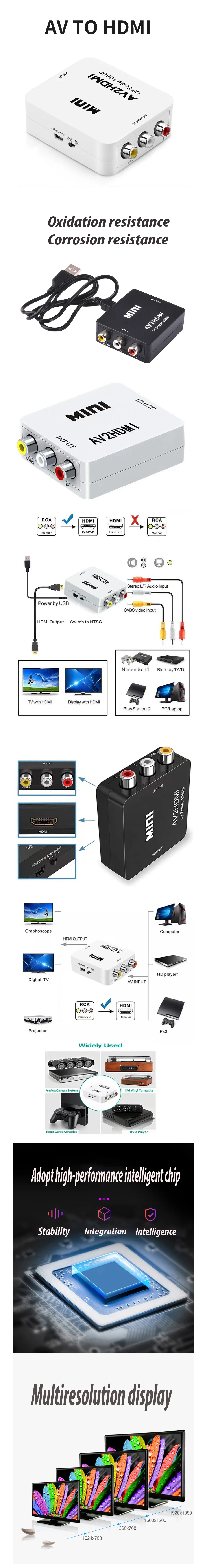 2. interface AV, convertisseur de boîtier décodeur peut être connecté à l’interface HDMI TV ou affichage.