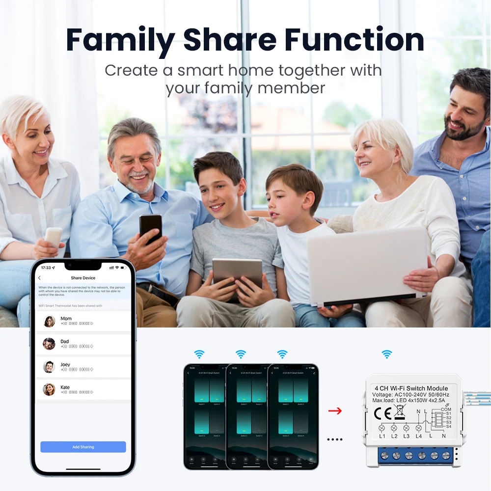 [ Dual Way Control ] -1Gang/2Gang/3Gang/4gang WiFi Switch Module Upgrade 2 way control switch without change wiringdesign of house