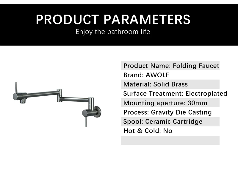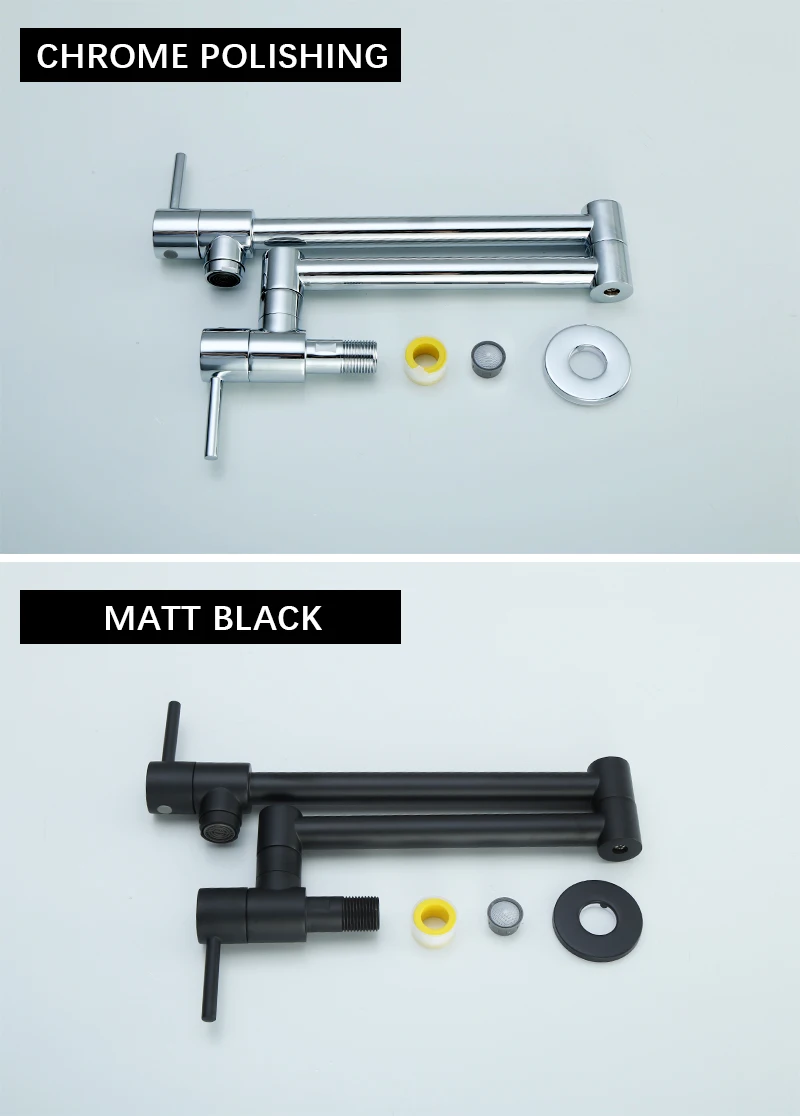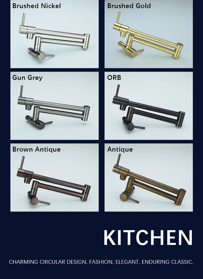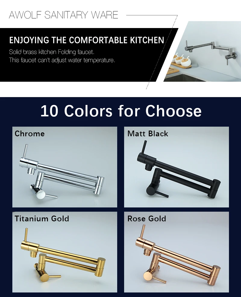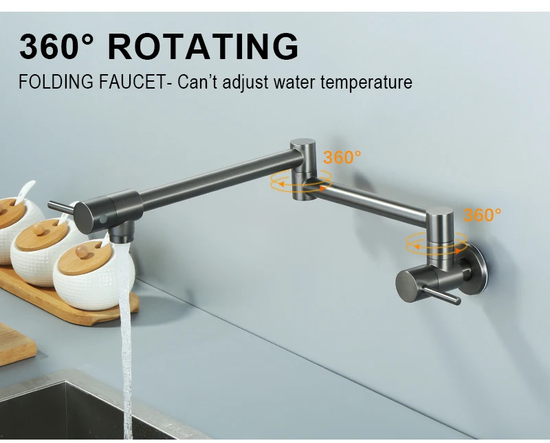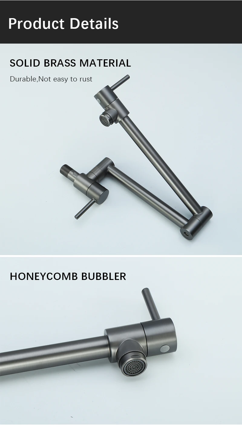 Awolf robinet de cuisine mural pliant pistolet de remplissage de Pot gris laiton massif Rotation à 360 degrés robinet d’eau d’évier à trou unique FW008