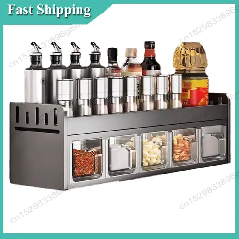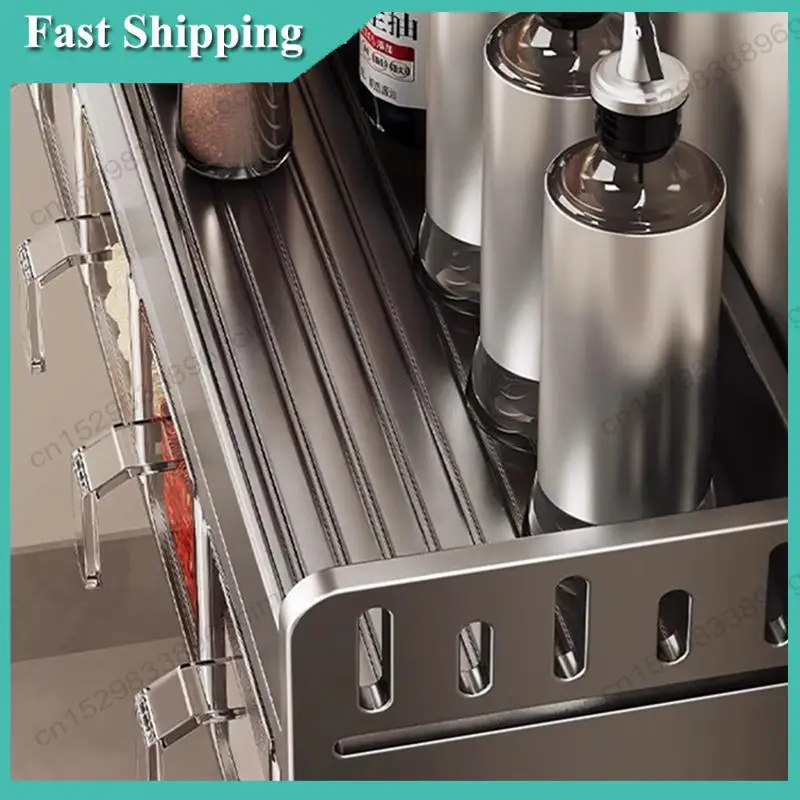-Étagère à épices murale en acier inoxydable BABQ – Rangement multifonctionnel pour les épices, les pots et les organisateurs de cuisine