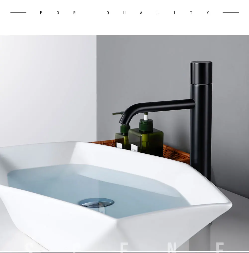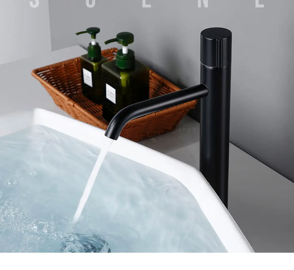 Bagnolux Noir Mat Salle De Bains Bassin Robinet Corps Haut Trou Rond Eau Froide Et Chaude Domestique Hôtel Bassin Robinet