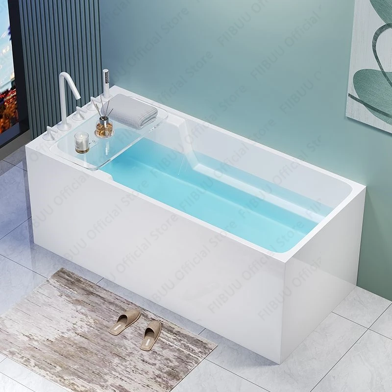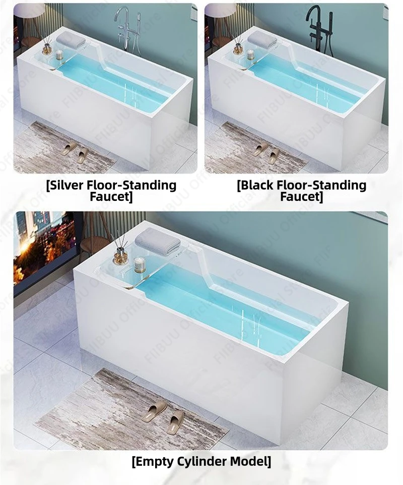 Baignoire Autoportante Blanche en Acrylique de Luxe, Grande Capacité de Charge, Meuble MultifonctionnelBaignoire Autoportante Blanche en Acrylique de Luxe, Grande Capacité de Charge, Meuble Multifonctionnel