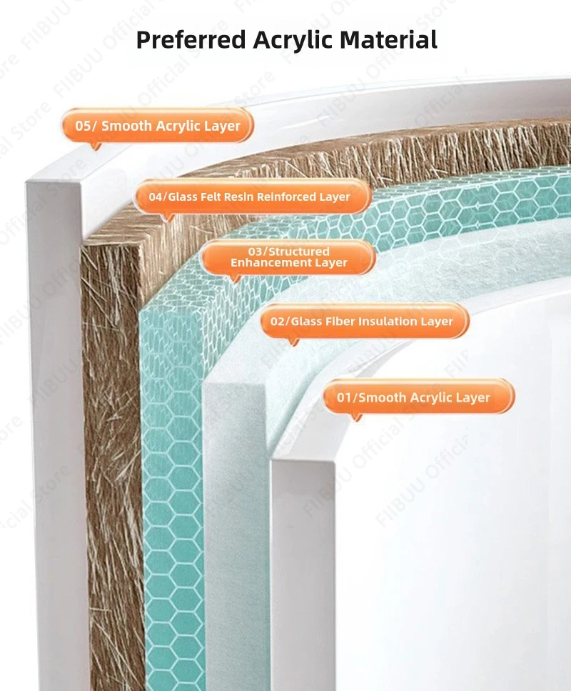 La baignoire est fabriquée à partir de matériaux acryliques de haute qualité, assurant une durabilité et une résistance remarquables. Vous pouvez l’utiliser facilement et sans aucun souci.
