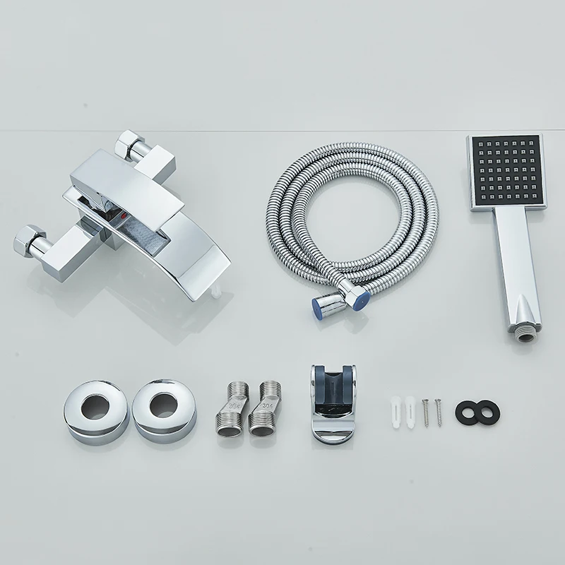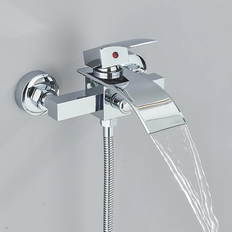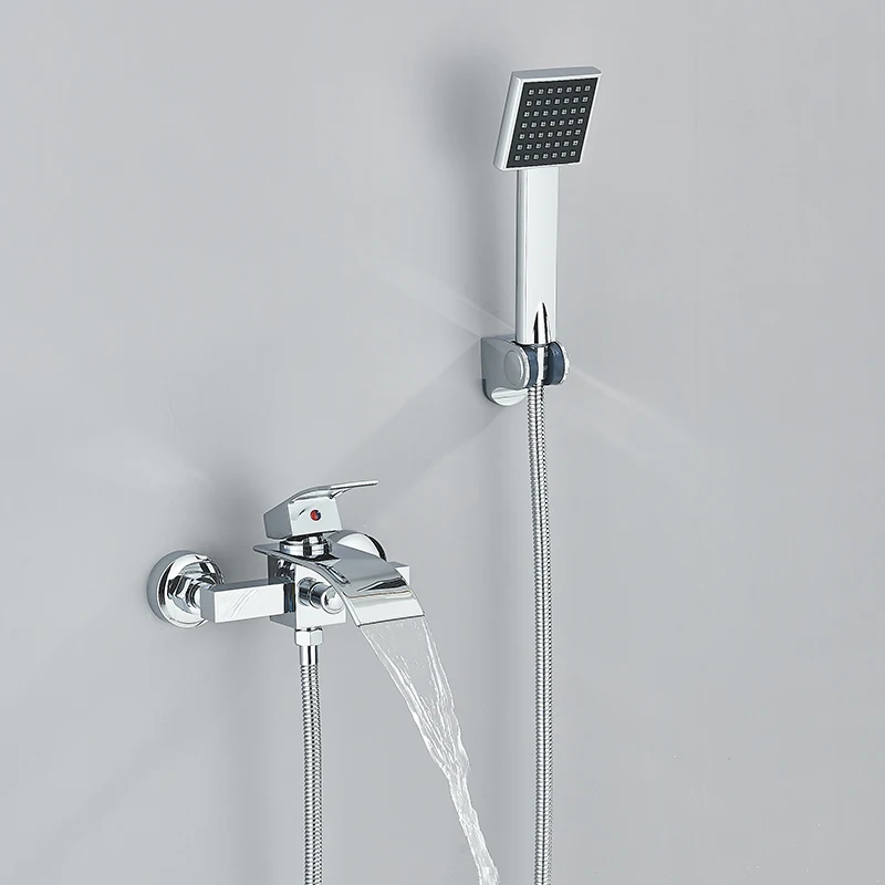 Robinet de douche de salle de bain chromé robinet de baignoire avec douche à main bec cascade montage mural mélangeur d’eau chaude froide bain