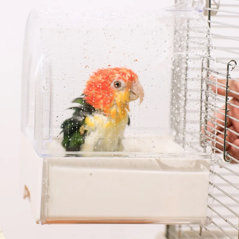 Baignoire en acrylique pour oiseaux, boîte de douche anti-responsabilité pour perroquet, bol suspendu détachable pour perruches, Cage transparente pour oiseaux, accessoires pour perroquets