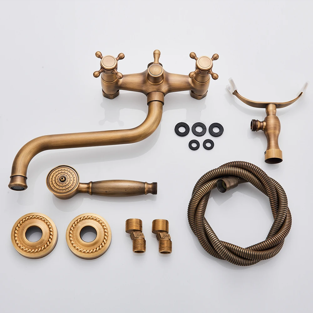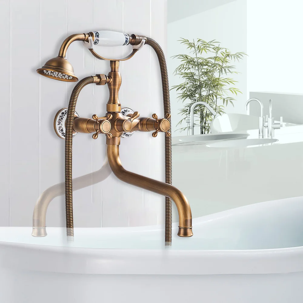 Robinet de baignoire antique en laiton dans le mur 30cm de Long bec mitigeur de baignoire en laiton rotation Long nez bain douche ensemble douchette en céramique
