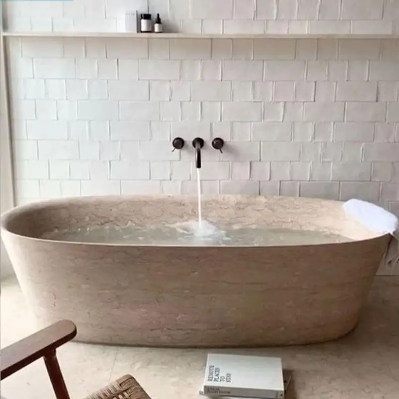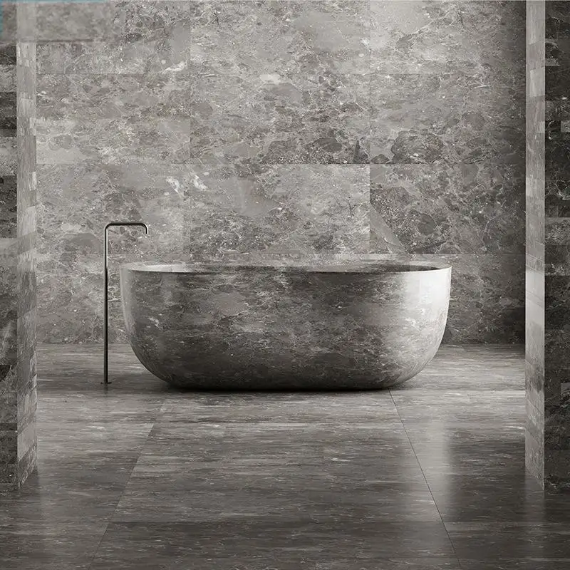 Carreaux en mosaïque, carrelage en porcelaine, grès, comptoirs d’îlot en marbre, baignoires, tables à manger.