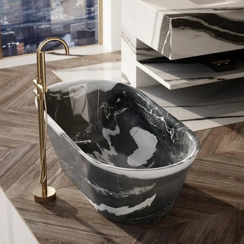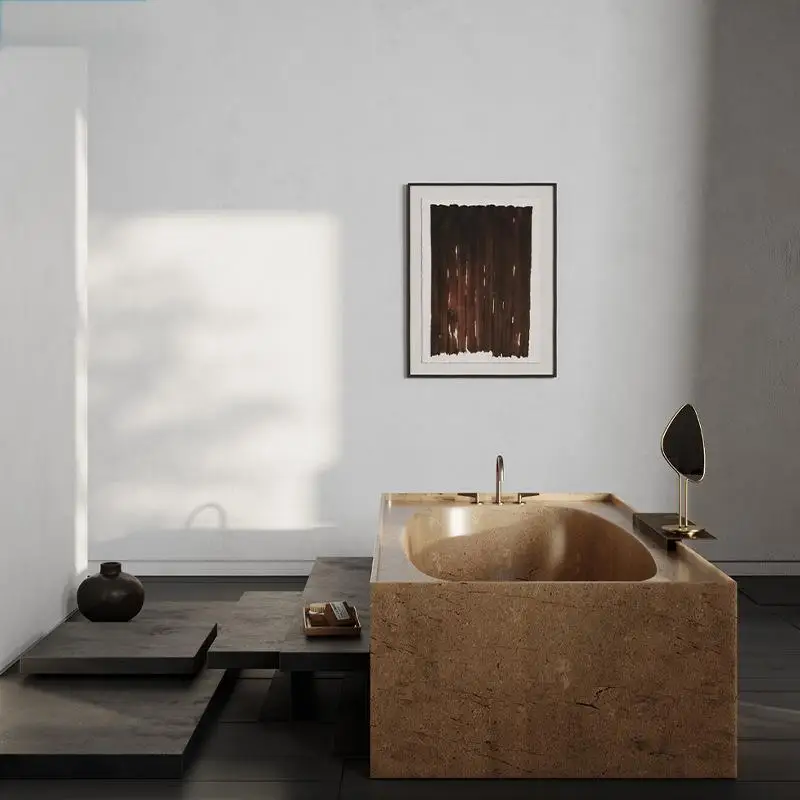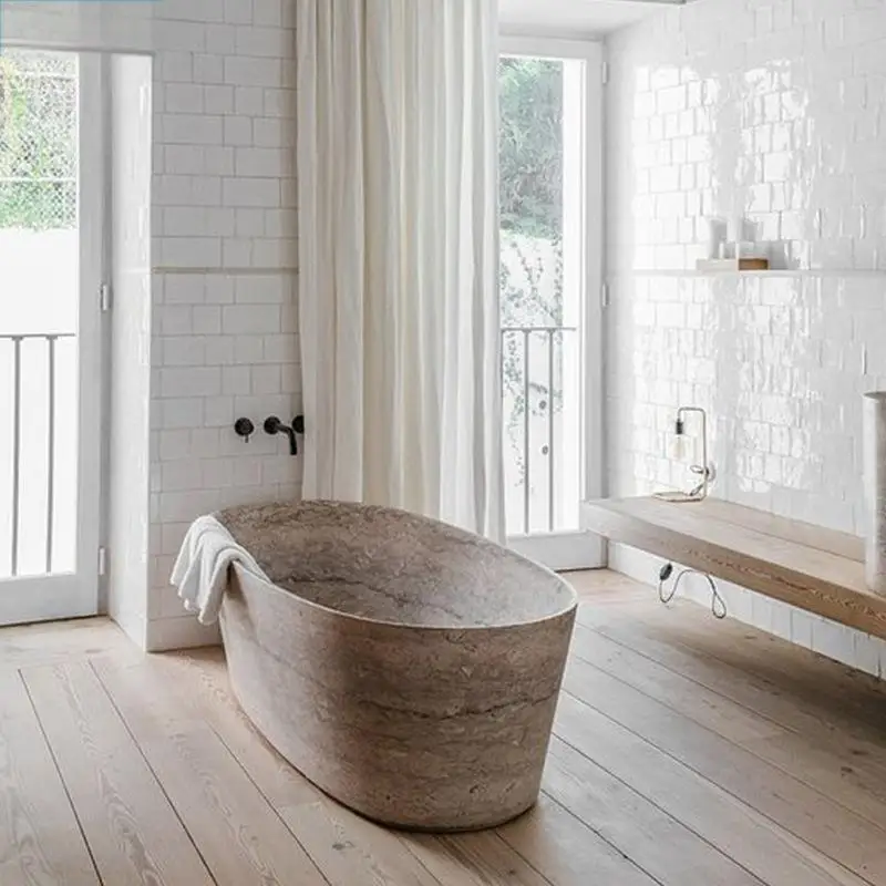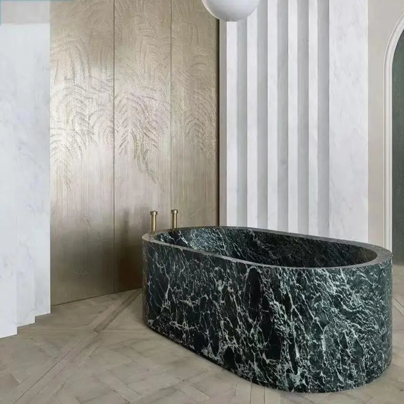 Carreaux de mosaïque, carreaux de porcelaine, grès, comptoirs d’îlot en marbre, baignoires, tables à manger.