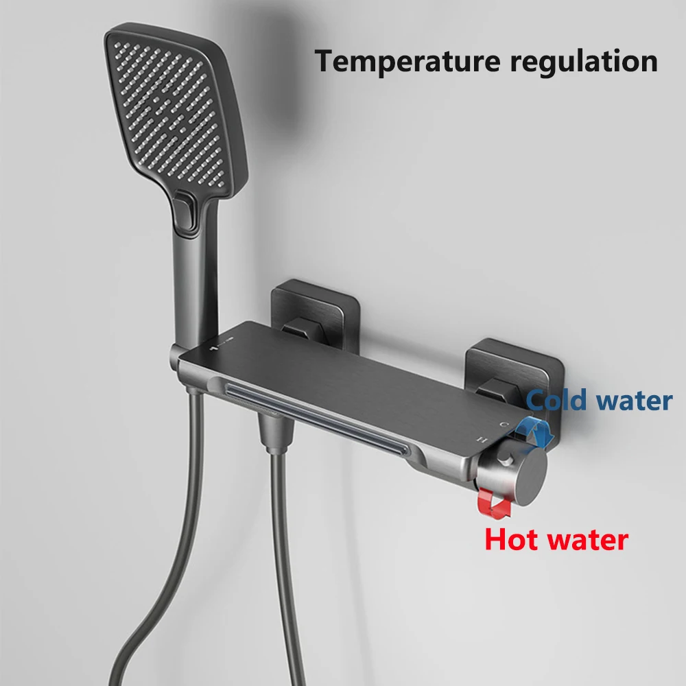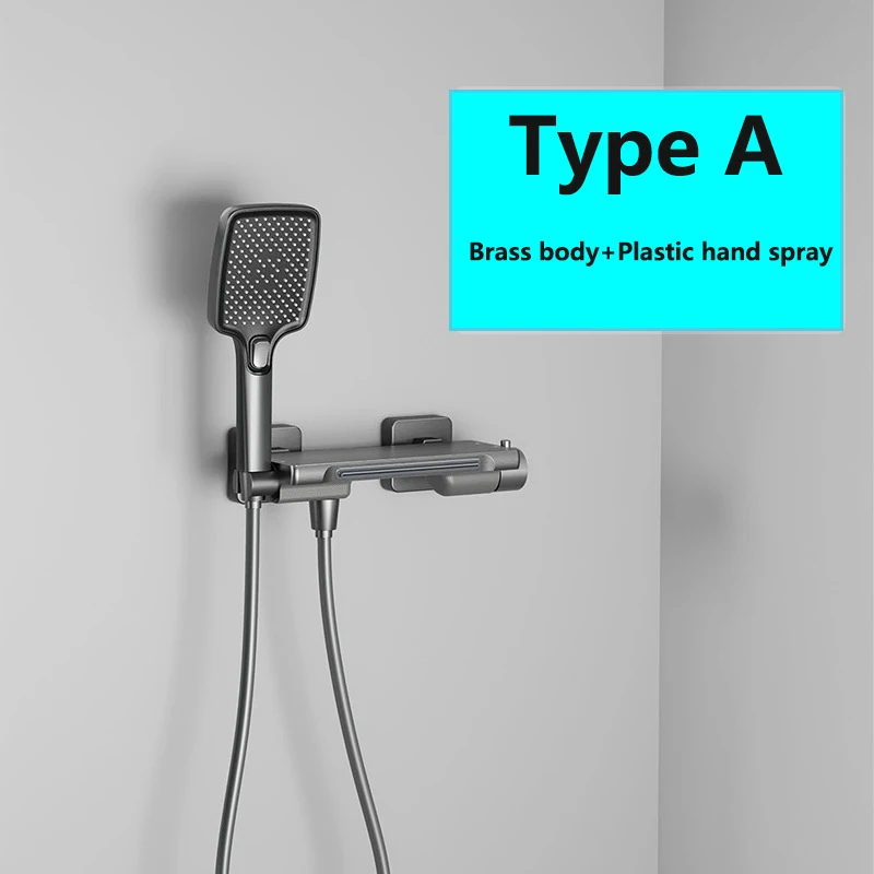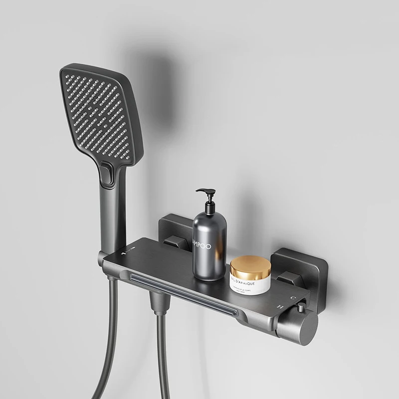 Baignoire Grise Froide et Chaude, Grande Plateforme de Stockage, Cascade HOShower, Robinet Corps en LaitonBaignoire Grise Froide et Chaude, Grande Plateforme de Stockage, Cascade HOShower, Robinet Corps en Laiton