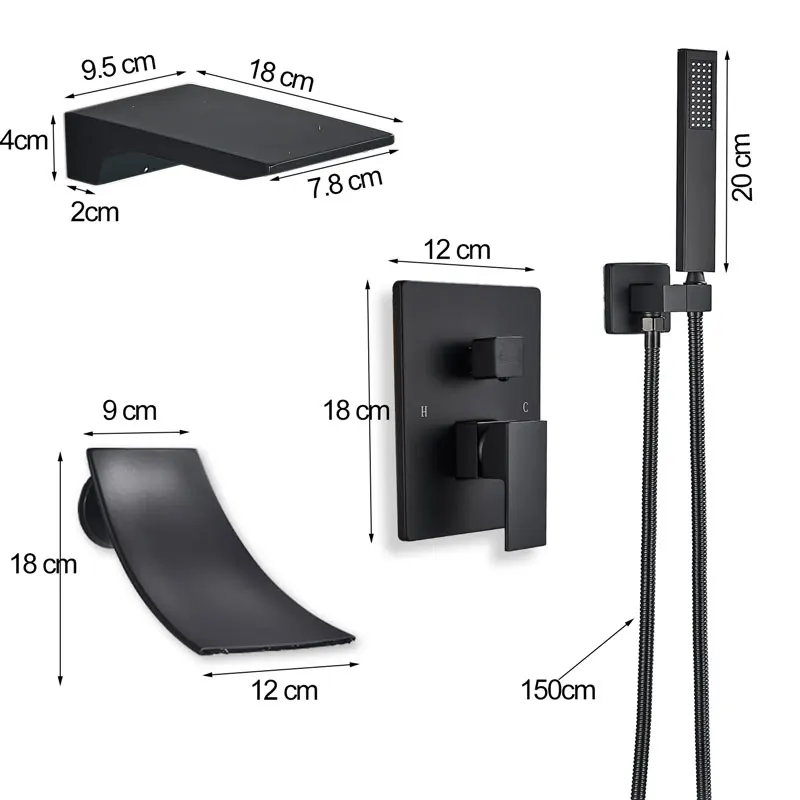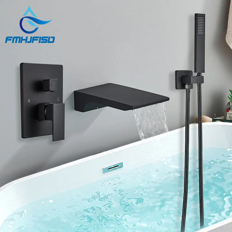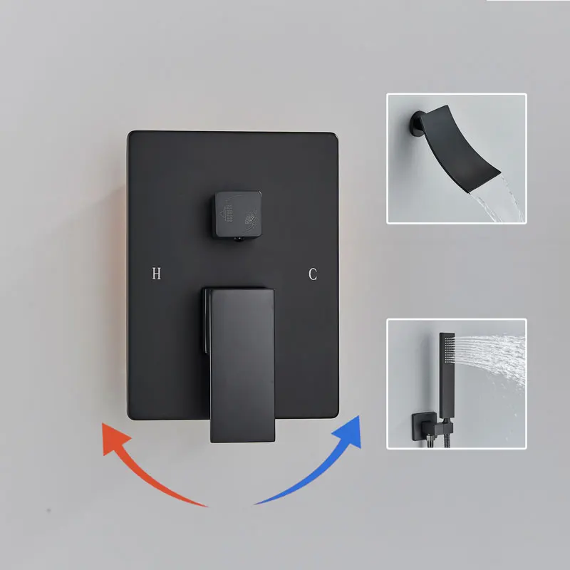 Noir salle de bain baignoire robinet Chrome bain douche robinet montage mural baignoire robinet mitigeur cascade robinet dissimulé baignoire grue