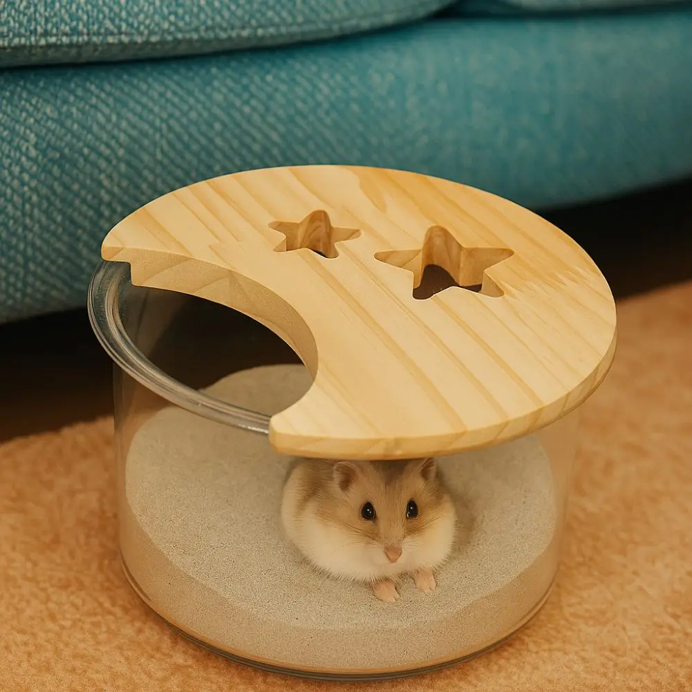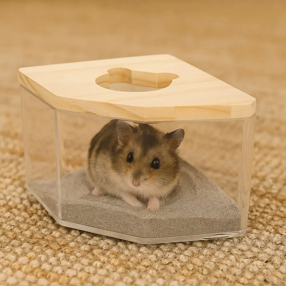 Baignoire transparente Anti-fuite pour Hamster, avec couvercle, ours doré, toilettes en forme d’étoile et de lune, bassin de sable pour Hamster, cochon d’inde