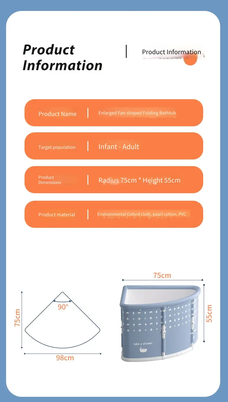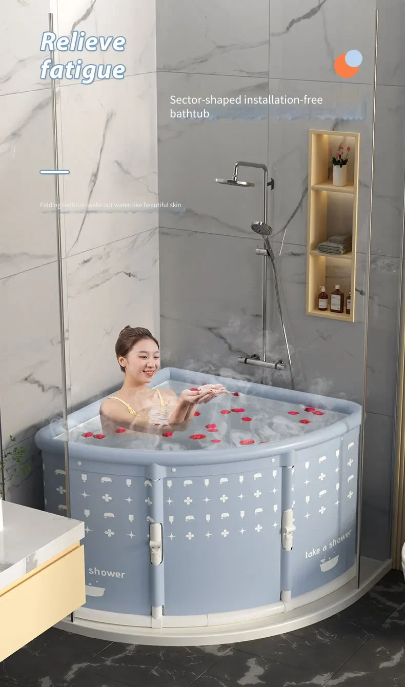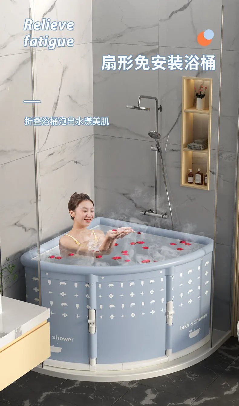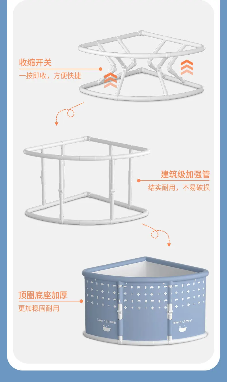 La baignoire triangulaire comprend un design pliable à un bouton sans outil, le fait facile à transporter et à ranger.