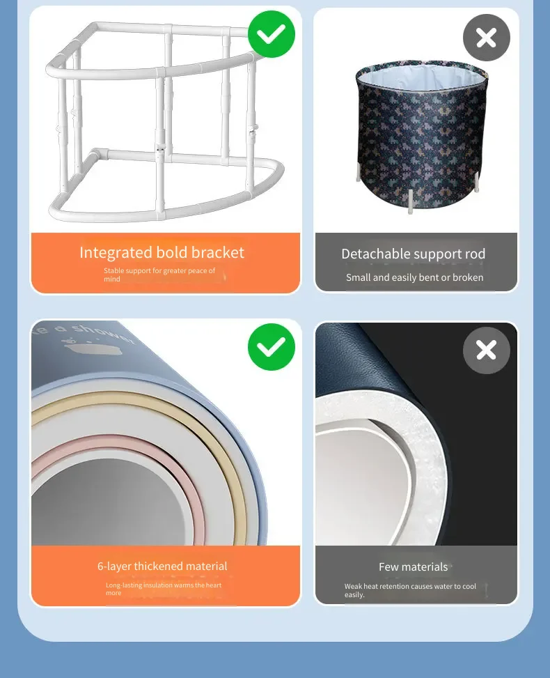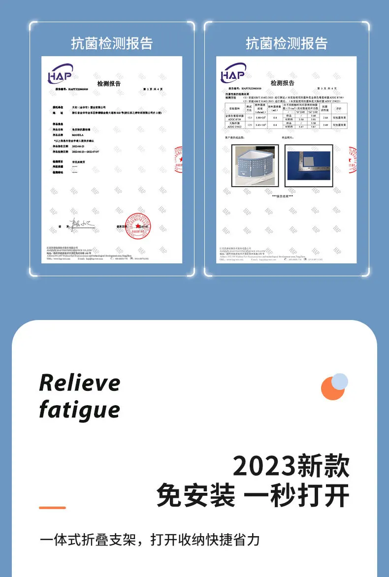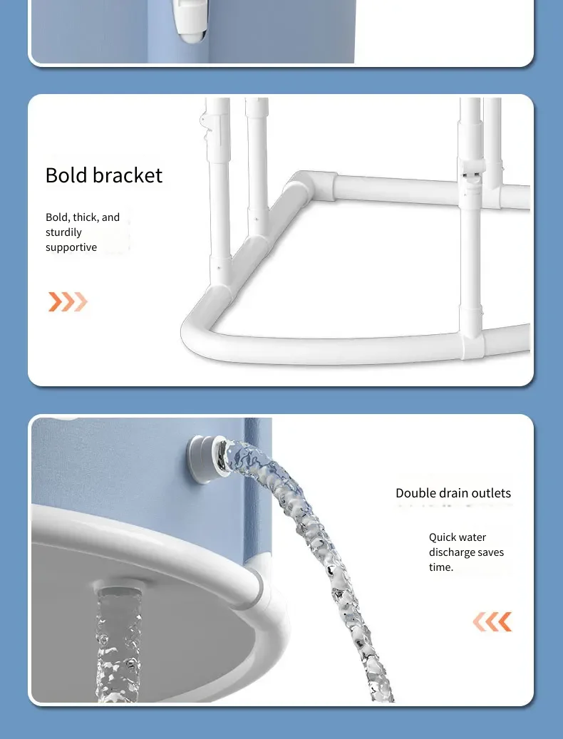 La baignoire triangulaire présente une conception pliable à un bouton sans outil, ce qui la rend facile à transporter et à ranger.