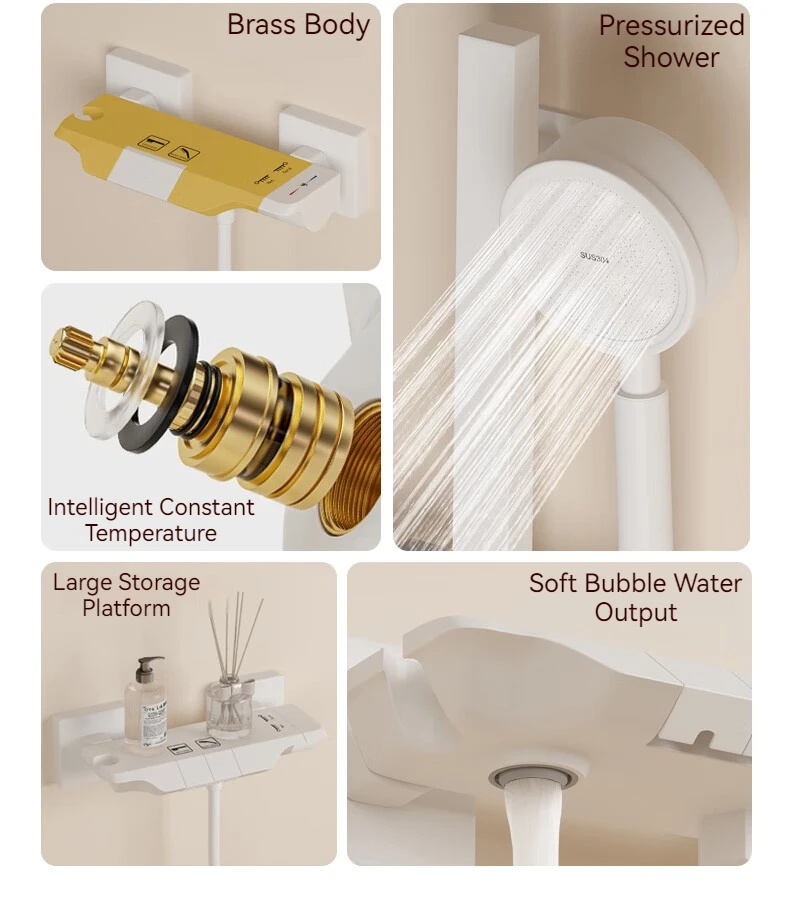 Bain blanc numérique Led froid et chaud salle de bain système de douche pluie mitigeur pluie douche pluie pommeau de douche robinet avec robinet à main